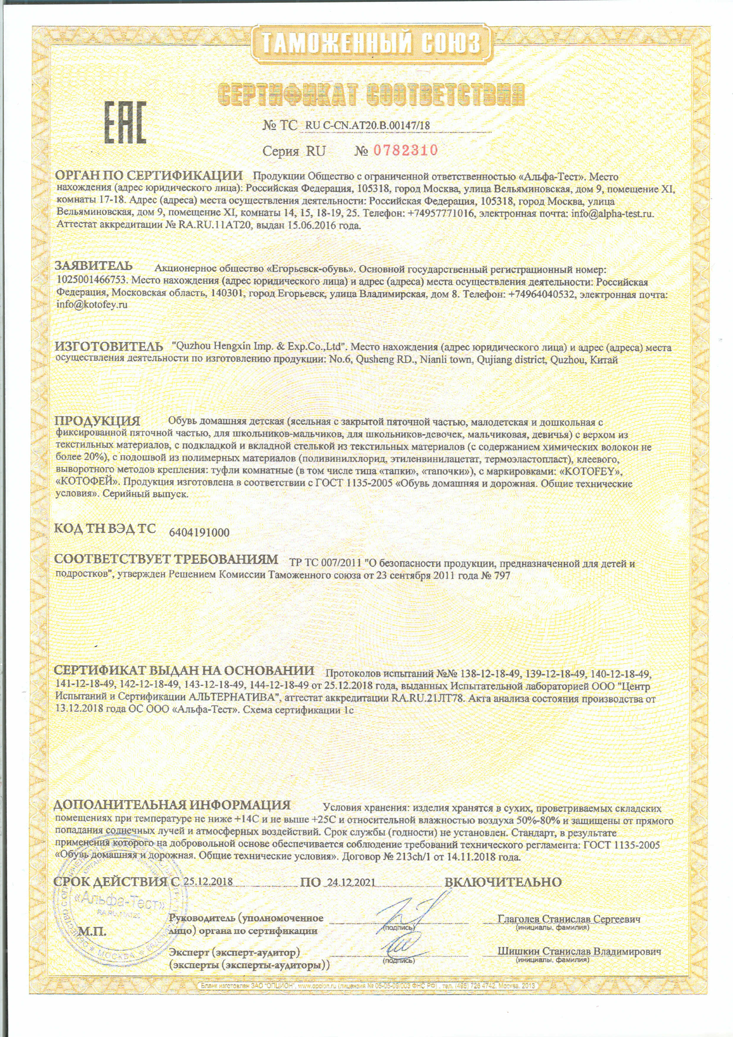 ТС RU С-CN.АТ20.В.00147/18