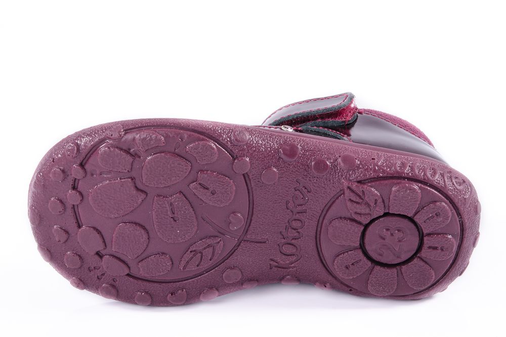 Модель выполнена полностью из натуральной кожи. Ремень с застежкой велькро позволяет легко обувать и снимать обувь и надежно фиксируют ножку малыша. Литьевой метод крепления подошвы обеспечивает ей максимальную прочность, необходимую гибкость и минимальный вес. Подошва имеет анатомическую форму следа и в точности повторяет изгибы свода стопы, что позволяет ноге чувствовать себя комфортно весь день. Мягкий манжет создает комфорт при ходьбе и предотвращает натирание ножки ребенка.
