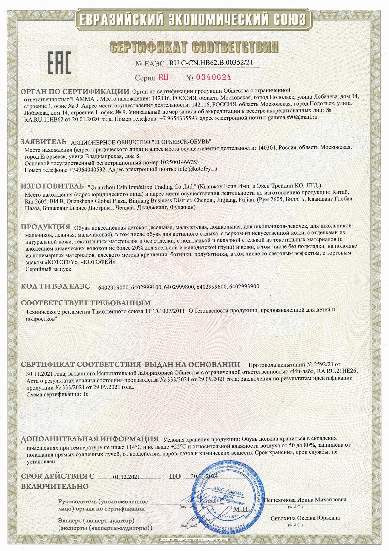 ЕАЭС RU С-CN.НВ62.В.00352/21