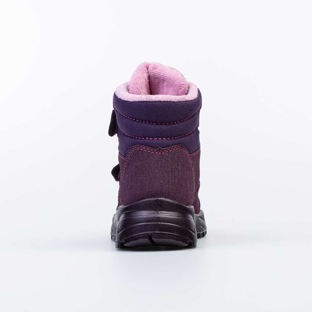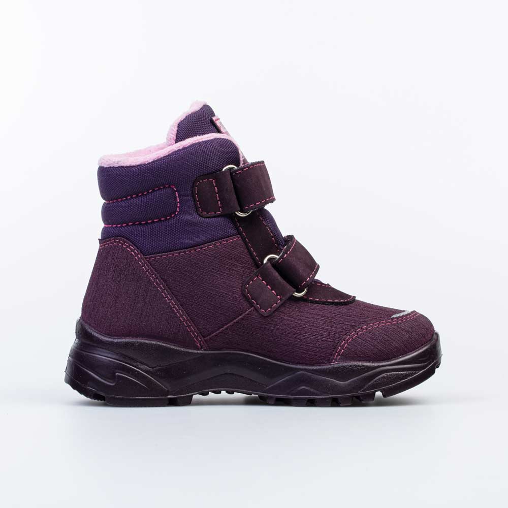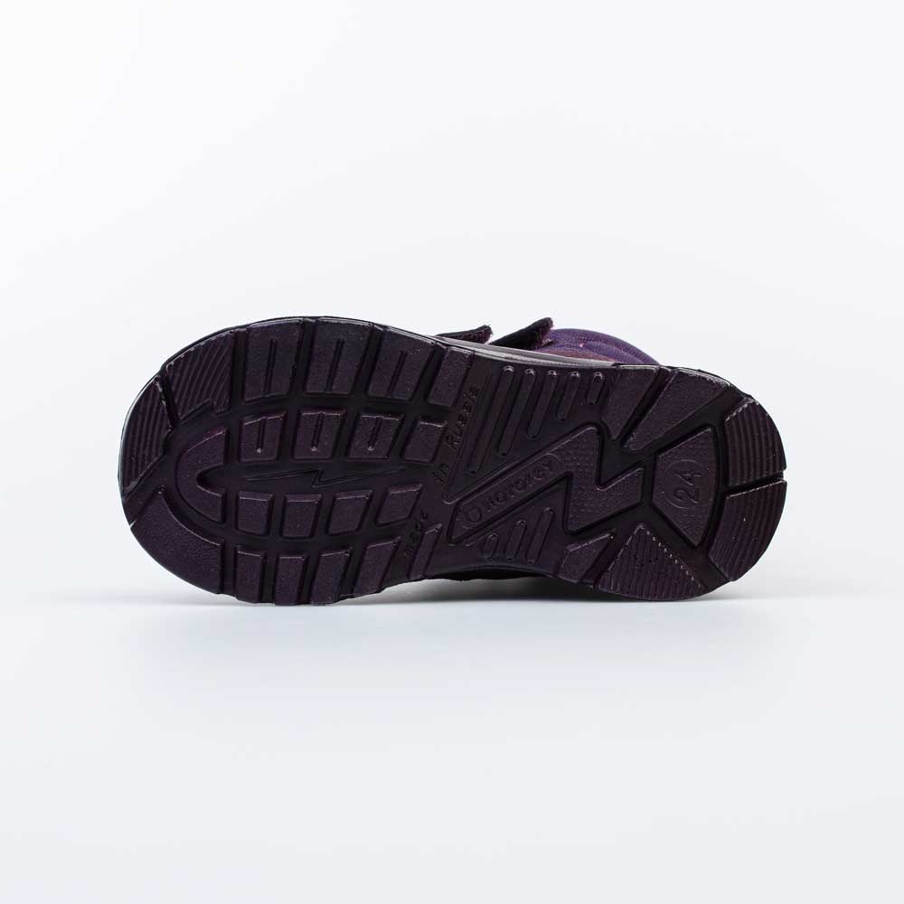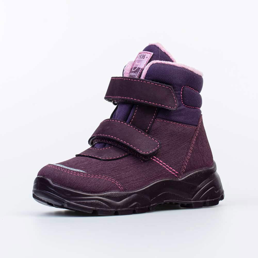 Фиолетовые ботинки на липучках имеют байковую подкладку и подходят для холодной погоды.