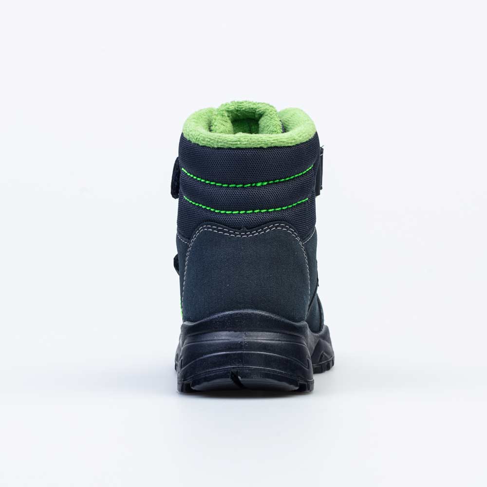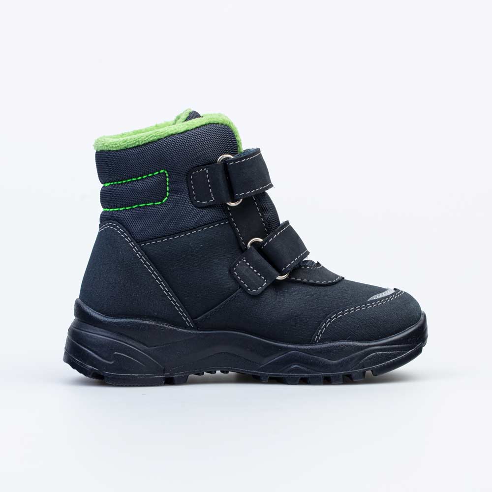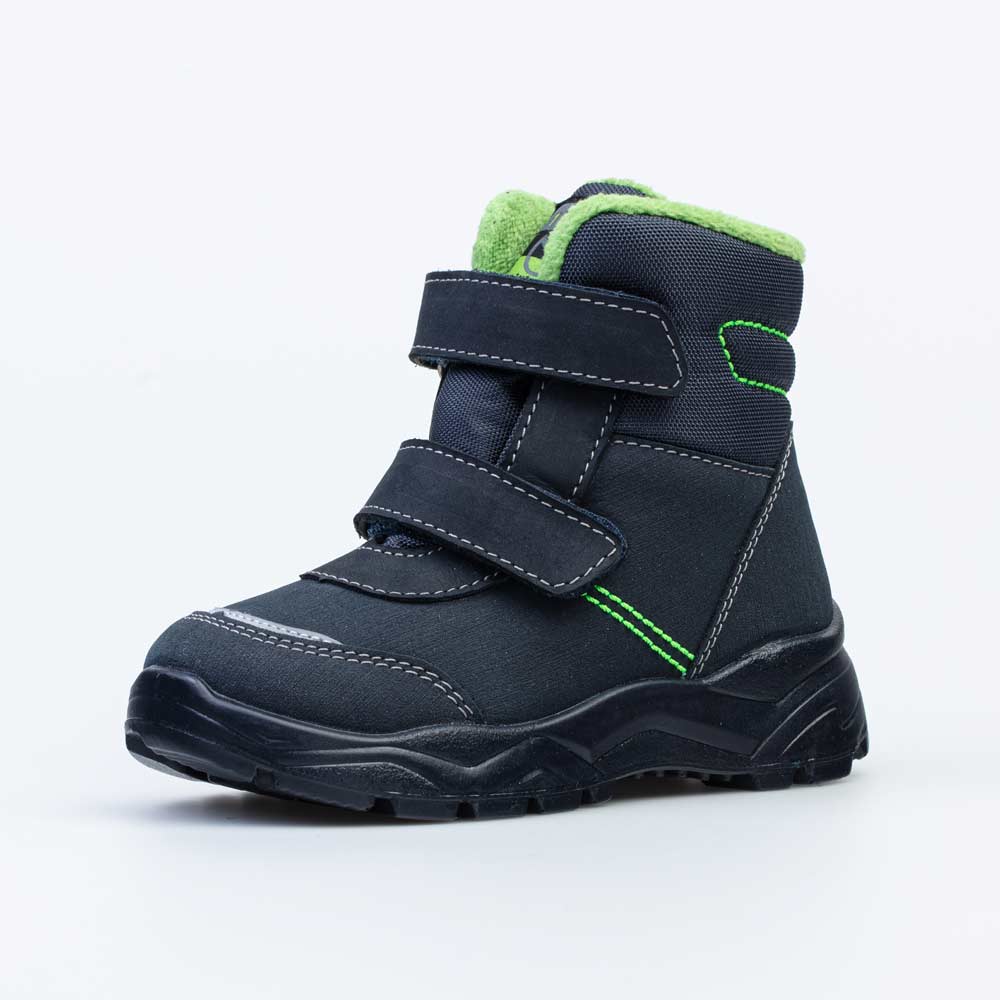 Синие ботинки на липучках имеют байковую подкладку и подходят для холодной погоды.