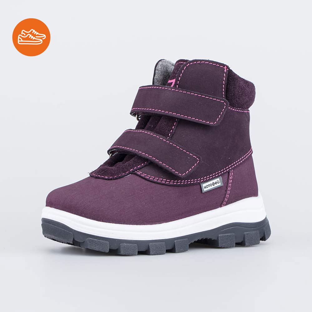 Зимние ботинки на липучках выполнены из натуральной кожи и предназначены для девочки.