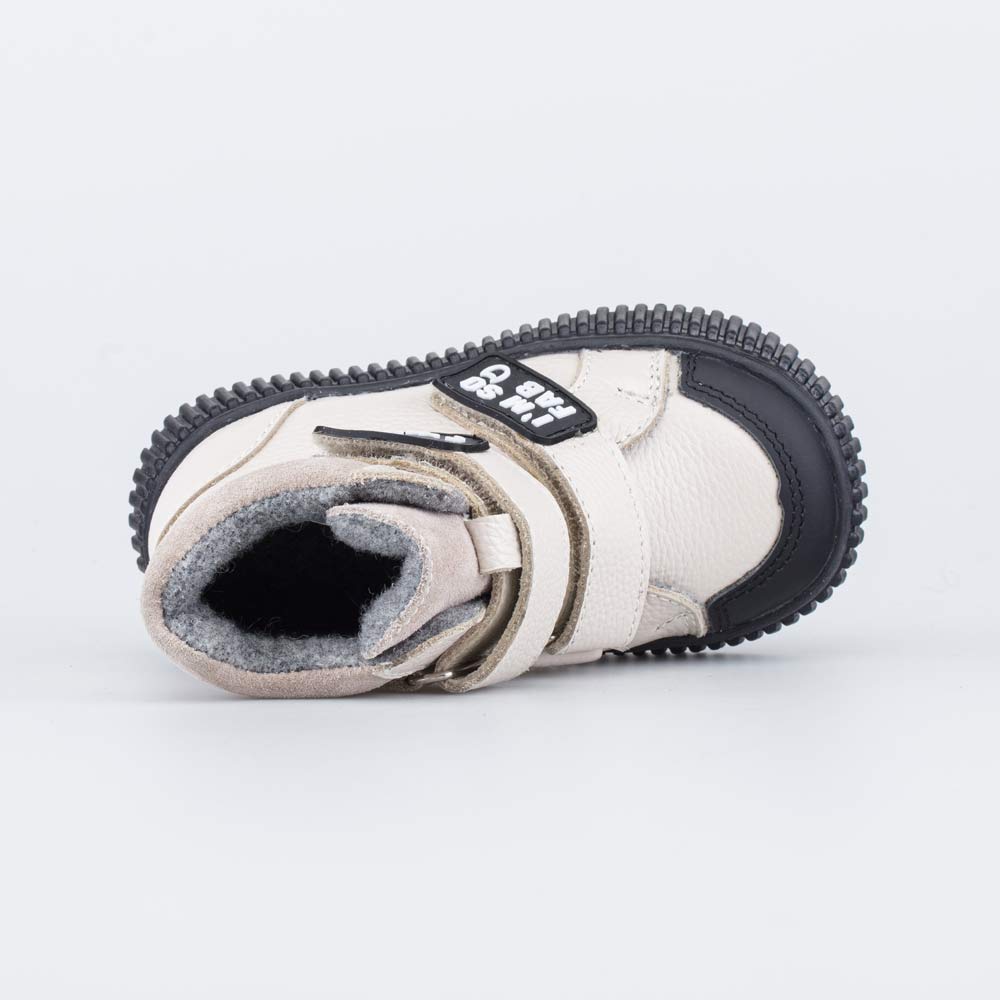 Верх выполнен из натуральной гладкой кожи бежевого цвета. Подкладка из байки (больше 80% натуральная овечья шерсть) и войлочная стелька хорошо сохраняют тепло.