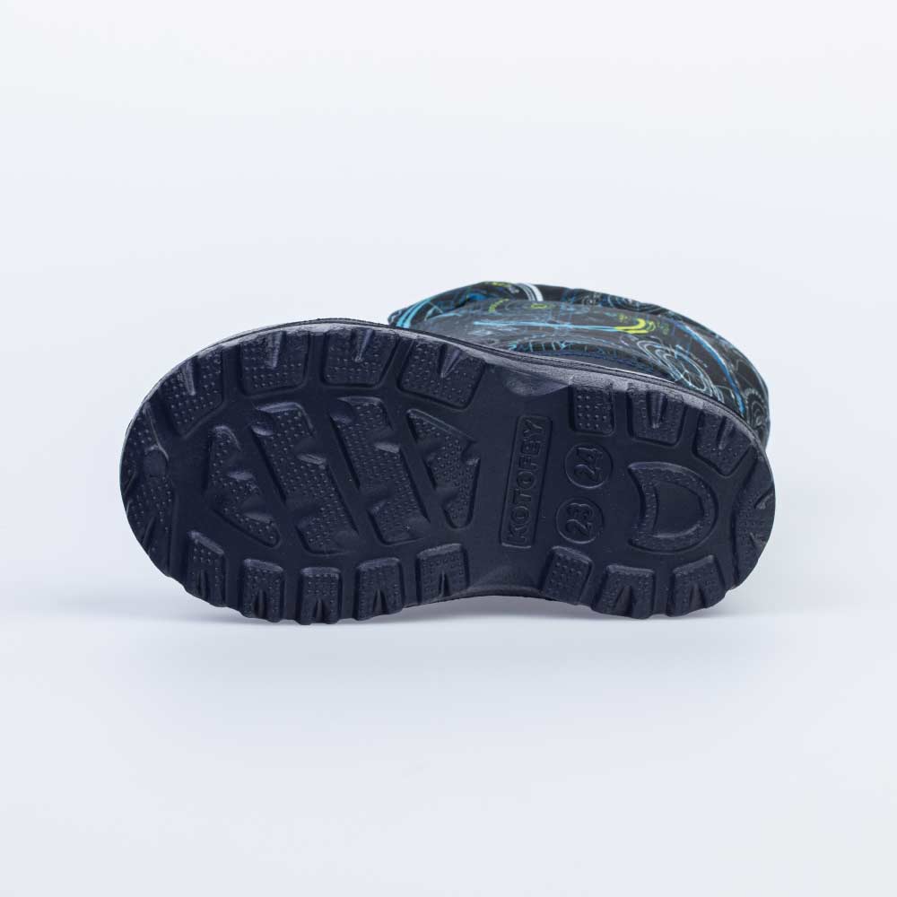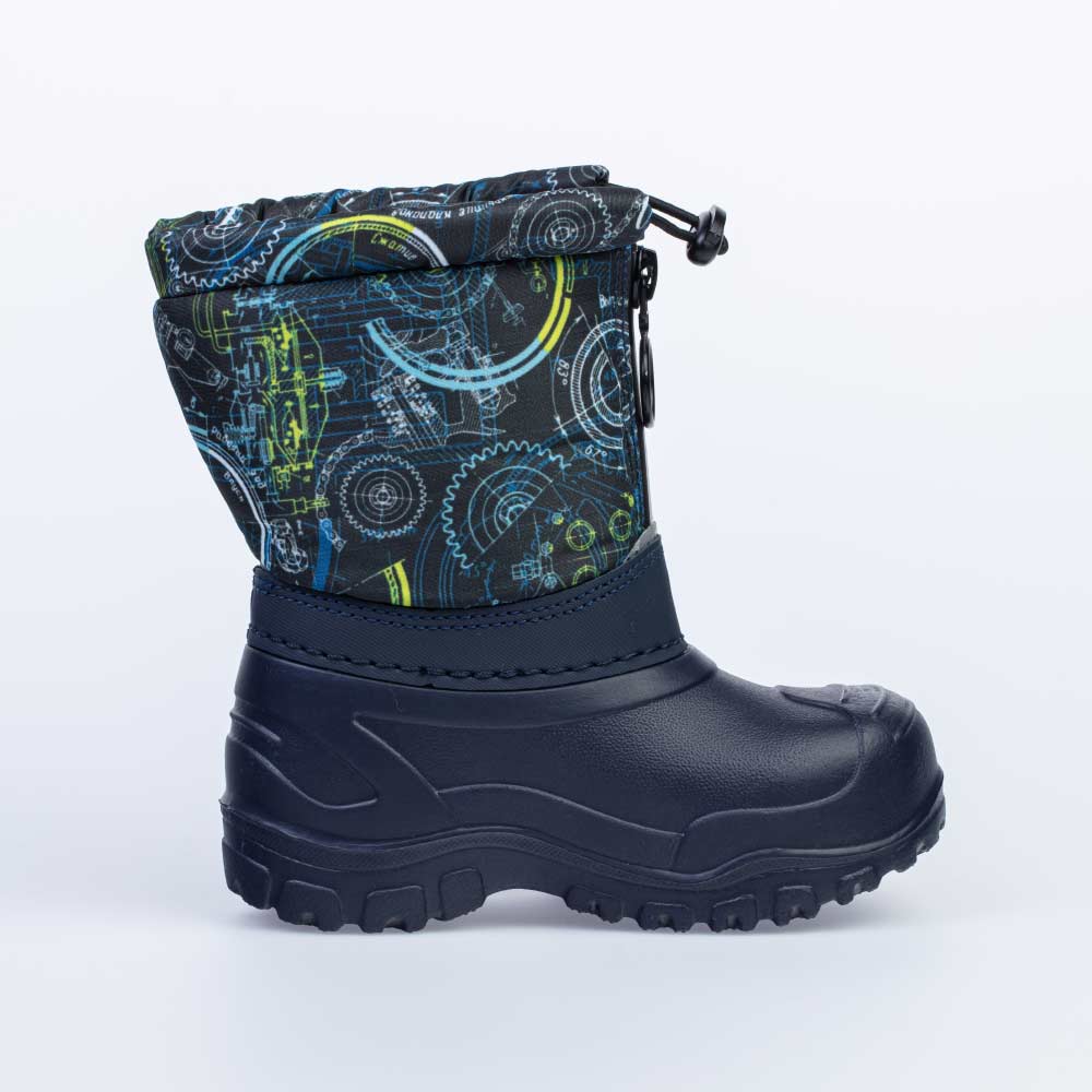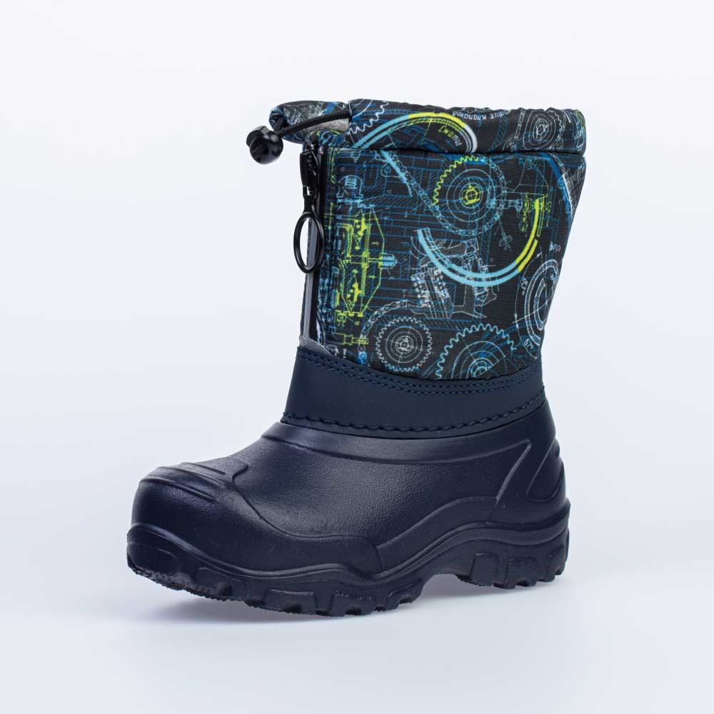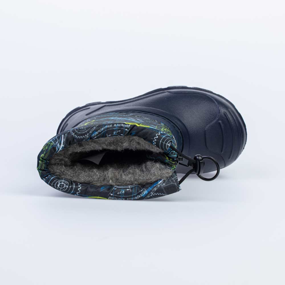 Обувь из группы \'SNOW&RAIN\' идеально подходит для ранней весны и поздней осени. Сноубутсы сочетают в себе достоинства резинового сапога и утепленной обуви. Материал верха - специальный водонепроницаемый текстиль на основе нейлона. Галоша лёгкого материала «ЭВА» обеспечивает защиту от влаги. Теплозащиту придает подкладка из натуральной шерсти. Для удобства и надежности крепления в этой модели используется молния и шнурок с утяжкой. Производство Россия.