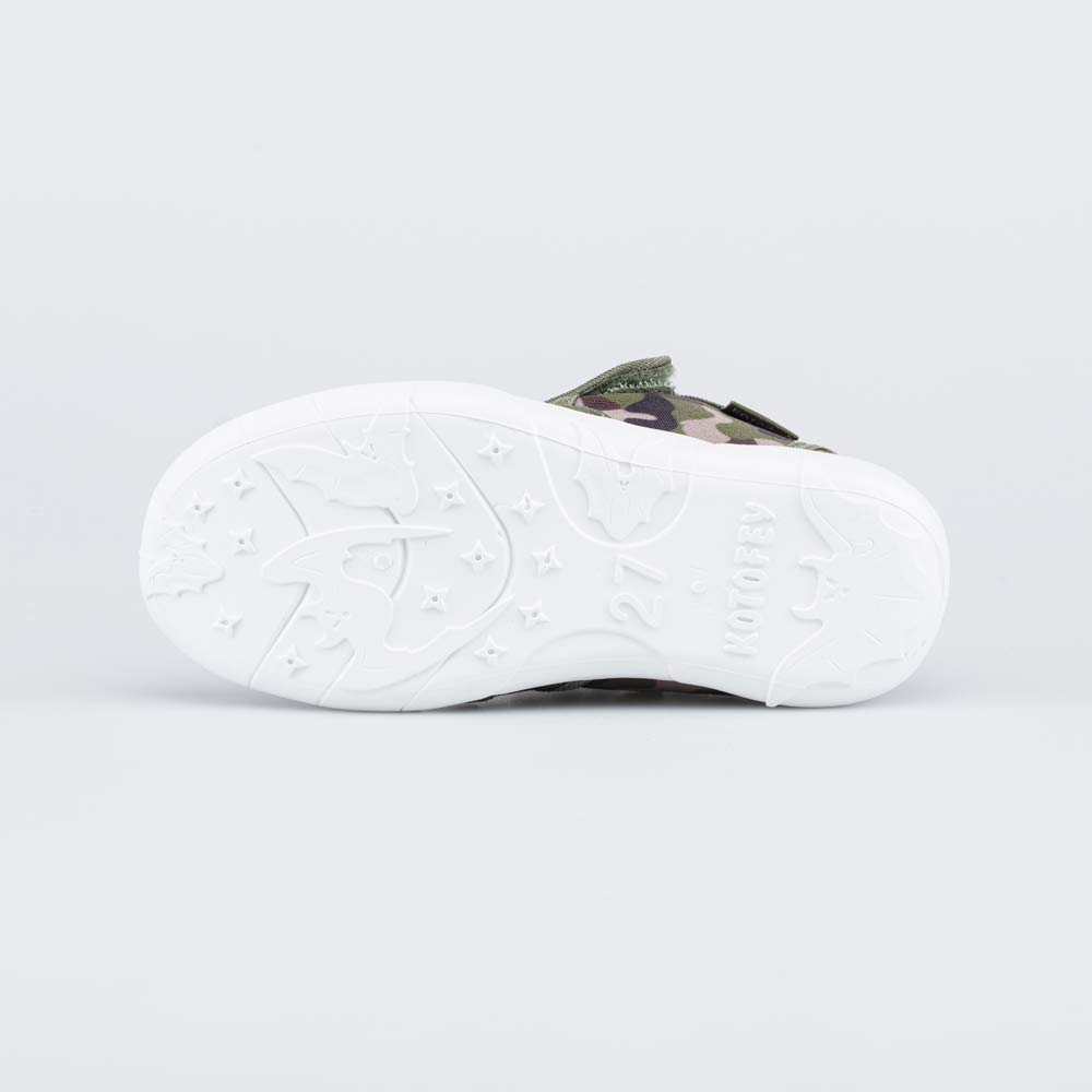 Верх изготовлен из легкого в уходе полиэстера и украшен принтом. Подкладка и съемная стелька выполнены из натурального хлопка, который позволяет стопам дышать, отводит от них влагу и обеспечивает здоровый микроклимат внутри детской обуви.