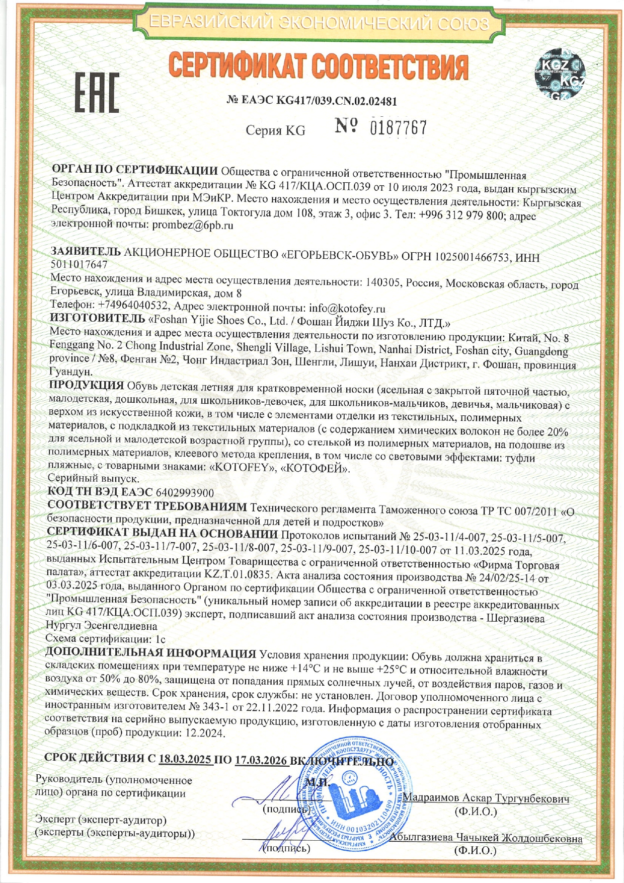 Подкладка из гипоаллергенного полиэстера дарит комфорт. Стелька из ЭВА имеет неоднородную фактуру, которая обеспечивает хорошее сцепление с влажной детской ножкой.