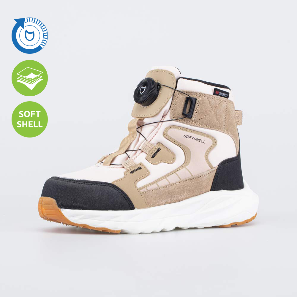 Верхний слой из материала Softshell обеспечивает защиту от непогоды: не продувается, отталкивает влагу и быстро сохнет. Ответственные детали выполнены из сочетания натуральной и искусственной кожи. Носочная и пяточная части защищены неубиваемыми накладками.