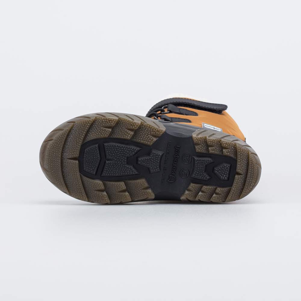 Шнурок-резинка с фиксатором позволяет отрегулировать по ноге голенище обуви, а ремешок с липучкой облегчает обувание.