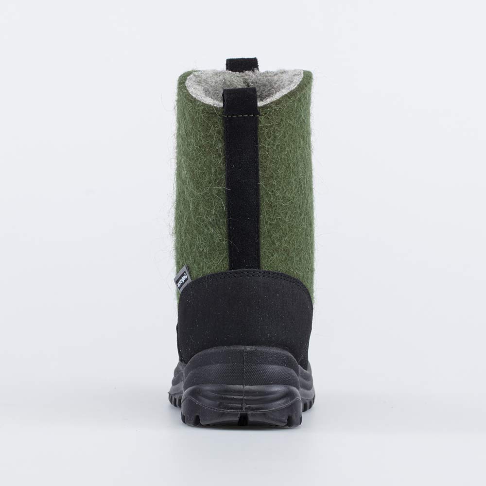 Детские сапожки-валенки выполнены из войлока цвета хаки.