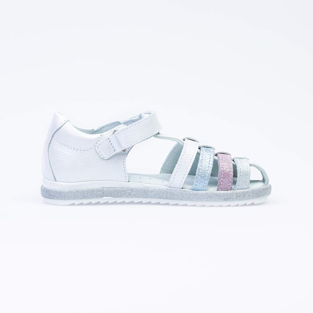 Серебристые кожаные сандалии для девочки подойдут для повседневной носки в жаркие дни, а также для праздничного образа или фотосессии.