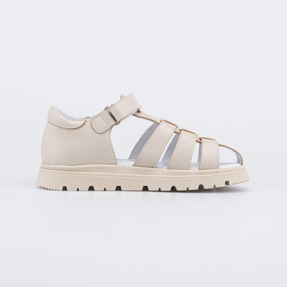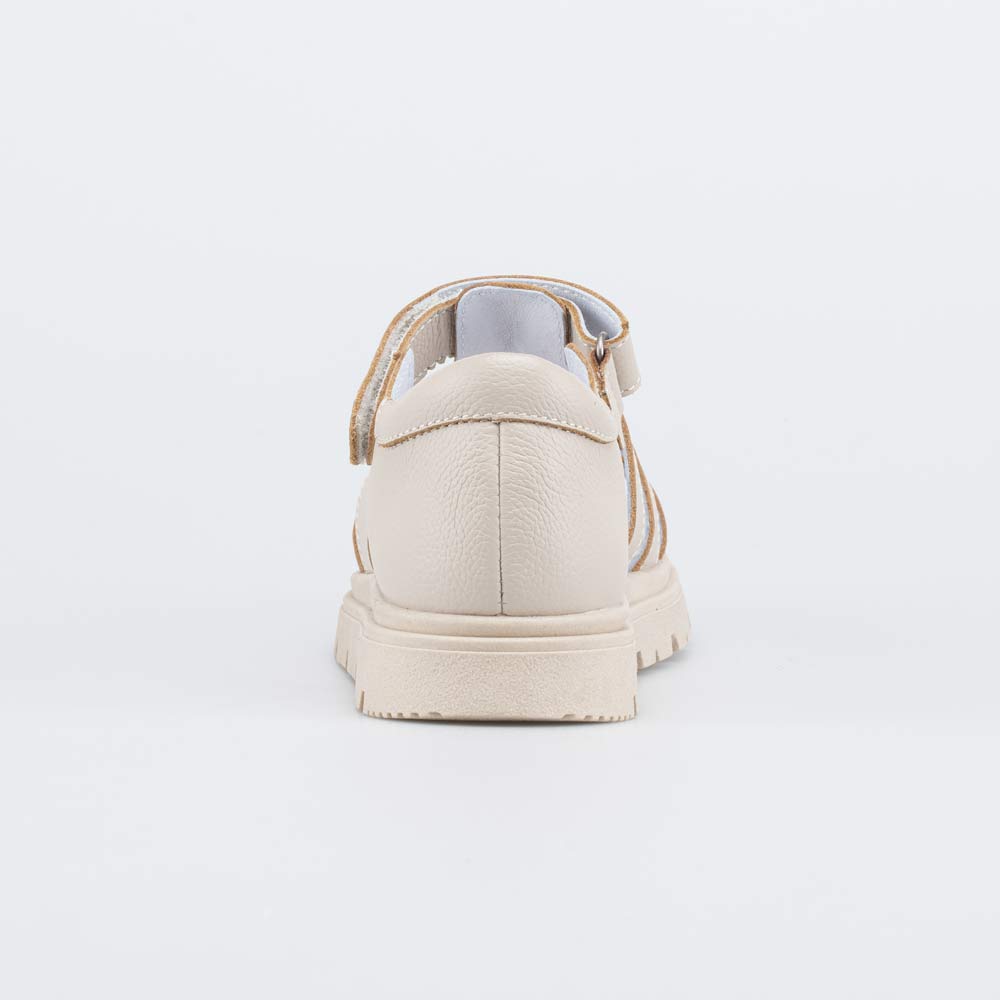 Бежевые сандалии на липучках подходят для девочки школьного возраста.