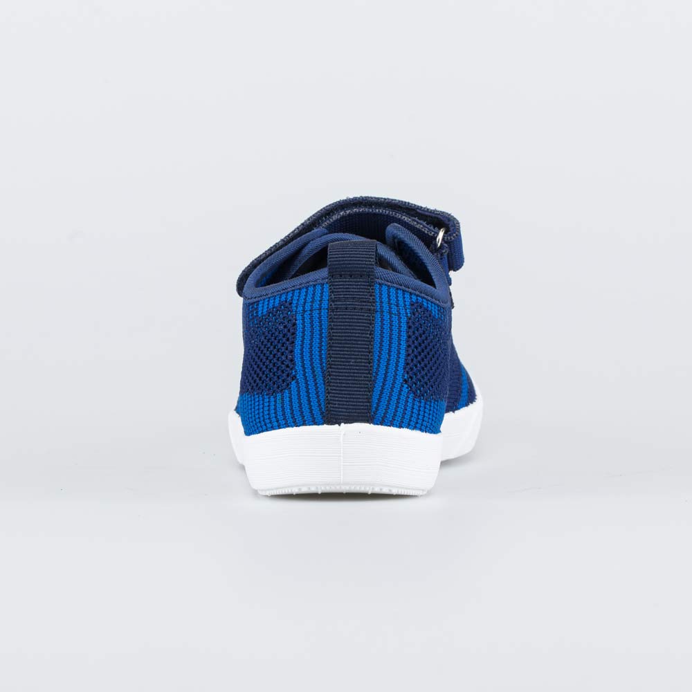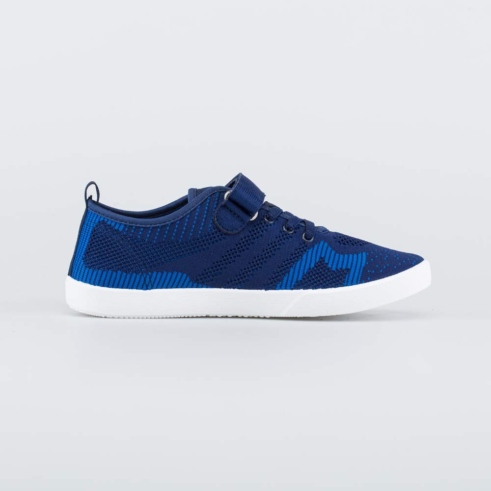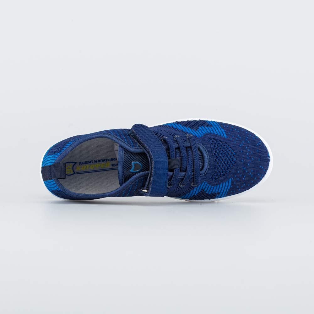 Синие кеды имеют верх из вязаного текстиля, обладающего высокой воздухопроницаемостью. В такой детской обуви комфортно даже при длительной носке.