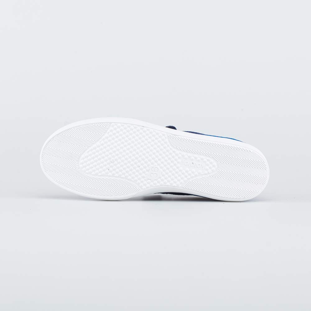 Кеды на липучках дополнены шнурками-резинками, которые не надо завязывать. Такую удобную обувь легко обувать и снимать.