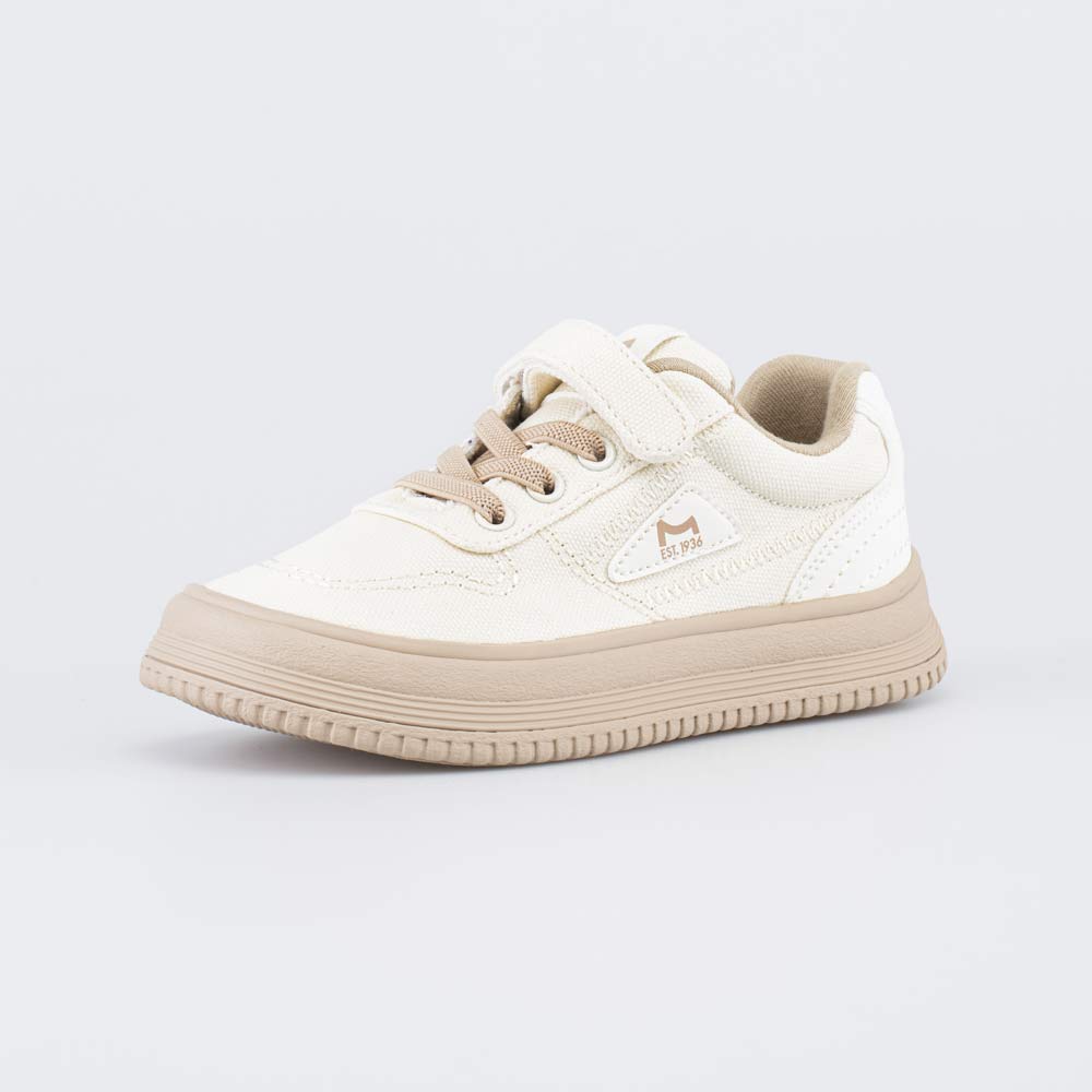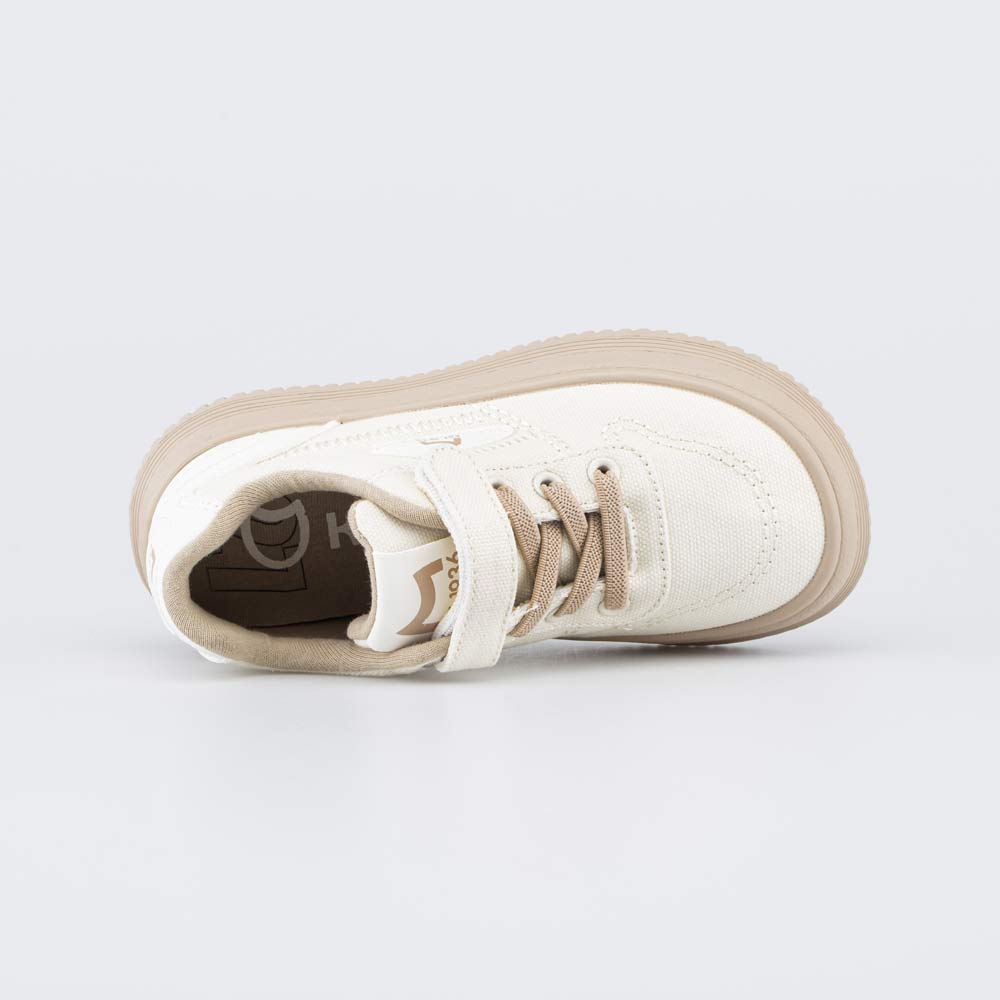 Эти бежевые кеды имеют верх из легкого в уходе текстиля, который обеспечивает высокую воздухопроницаемость детской обуви и поддерживает комфорт даже при длительной носке.