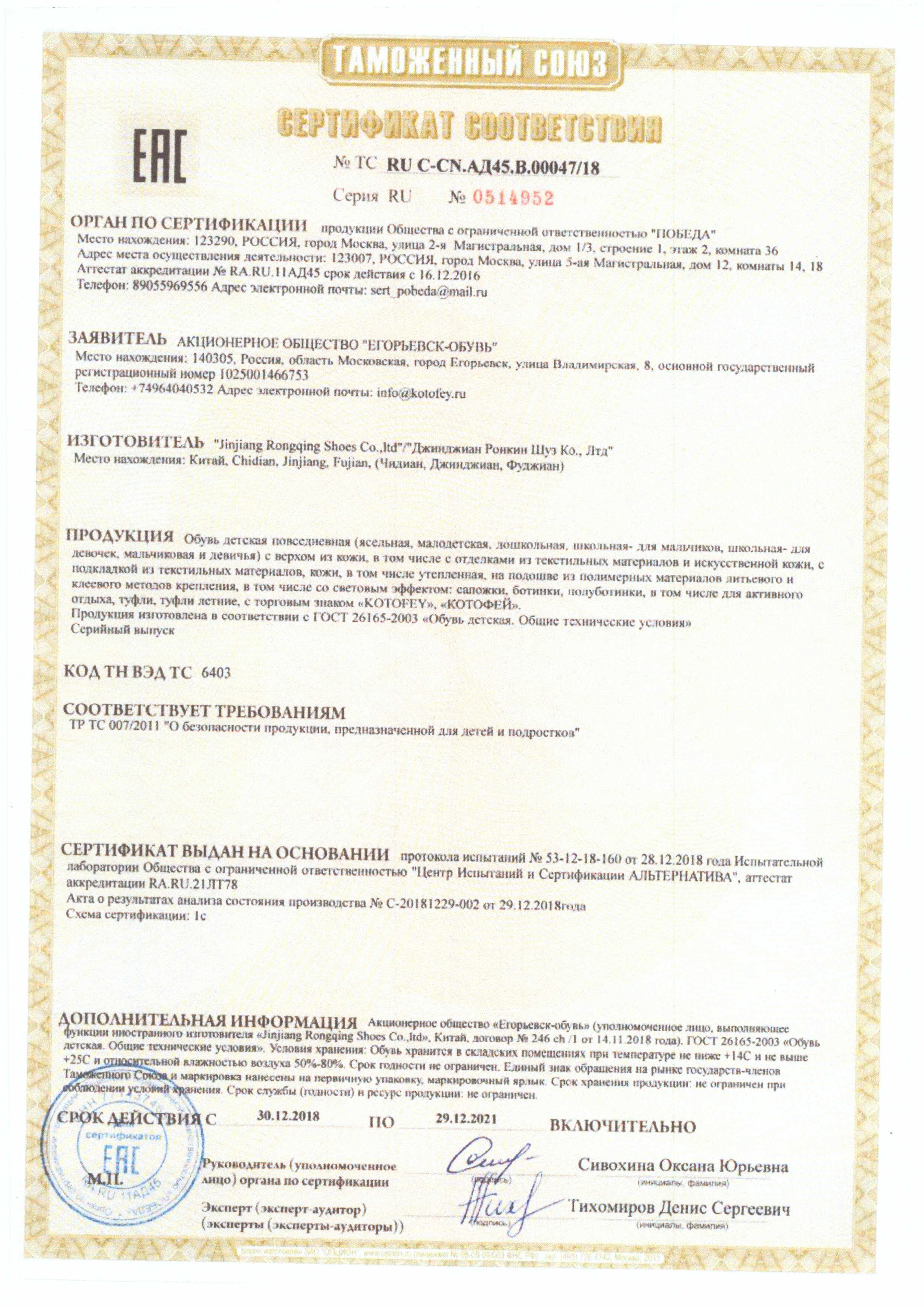 ТС RU С-CN.АД45.В.00047/18