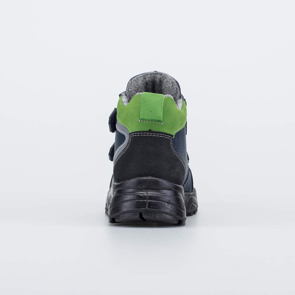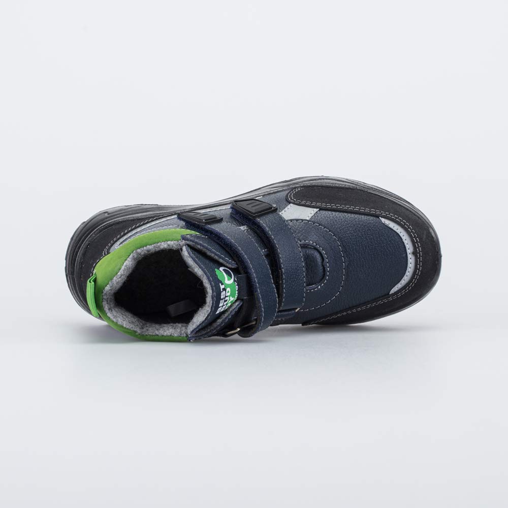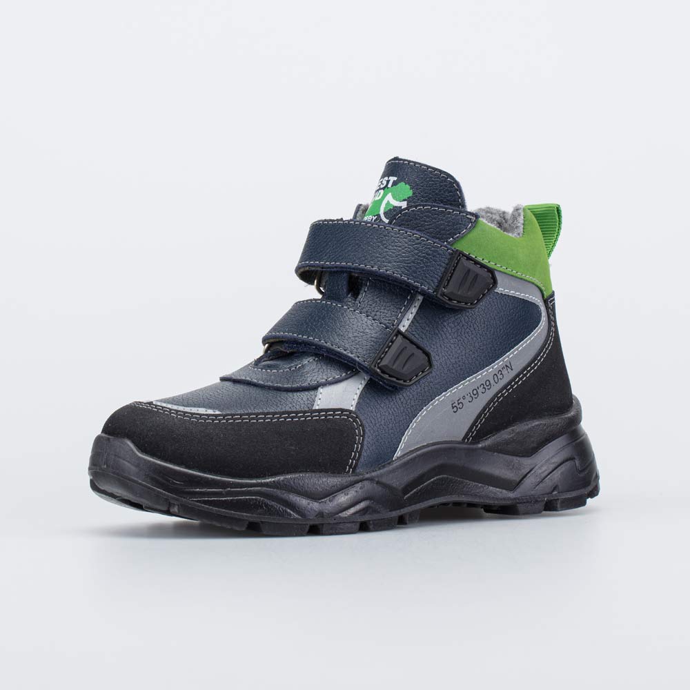 Утепленные кожаные ботинки черного цвета на липучках подходят для мальчика-дошкольника.