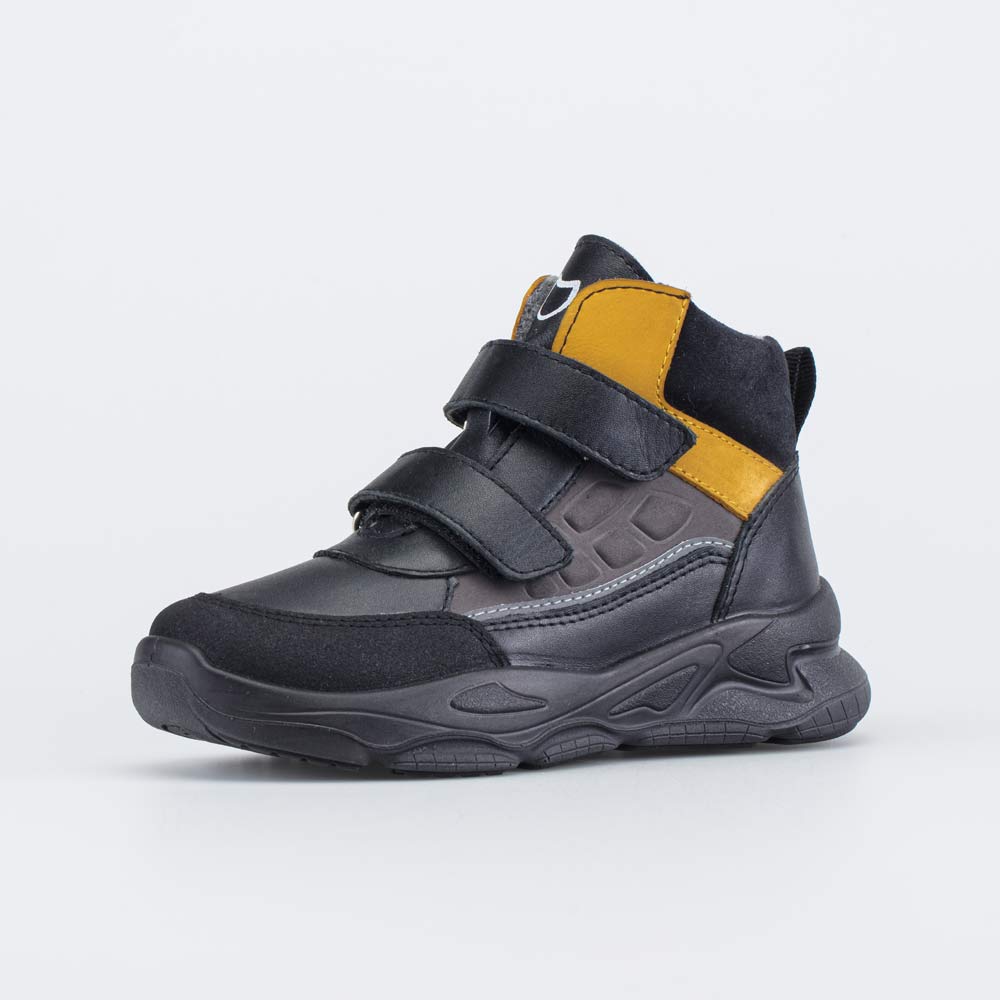Утепленные демисезонные ботинки для мальчика, выполненные в универсальном черном цвете, обеспечивают уют и комфорт в холодное межсезонье.