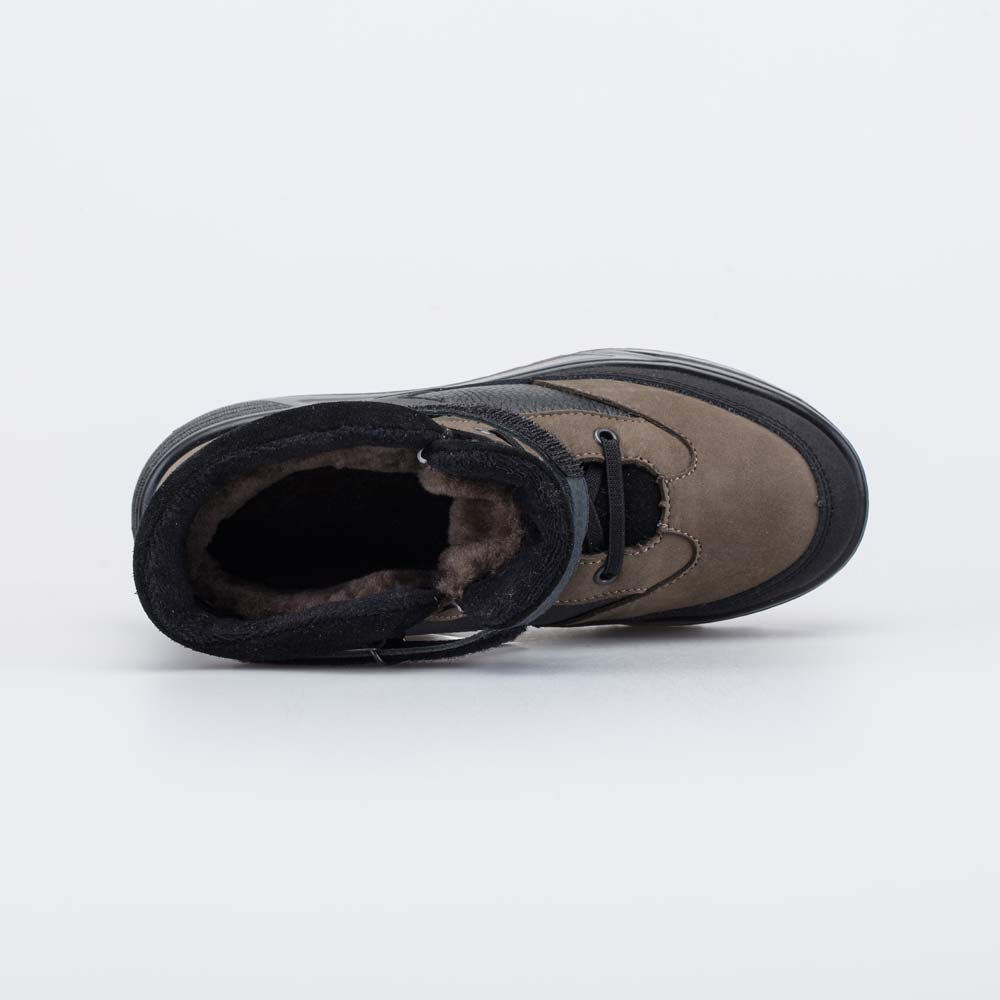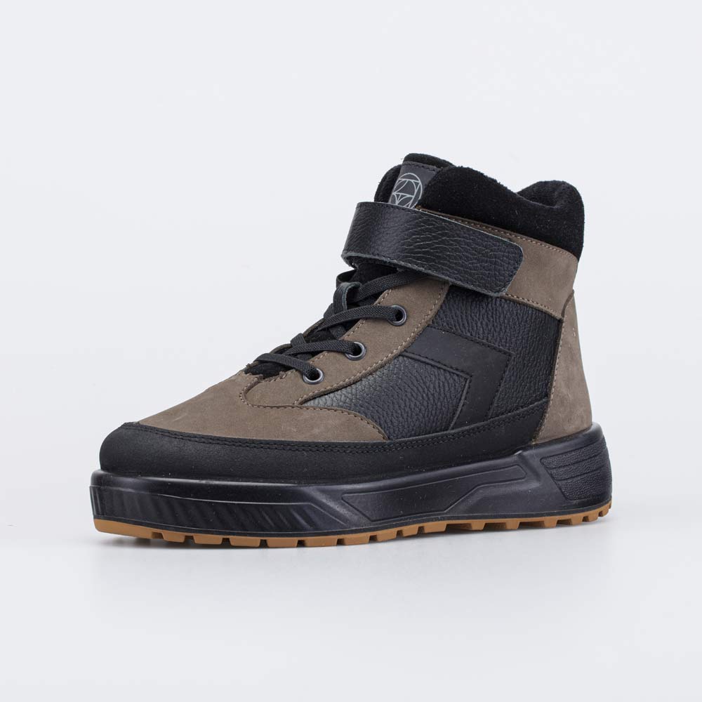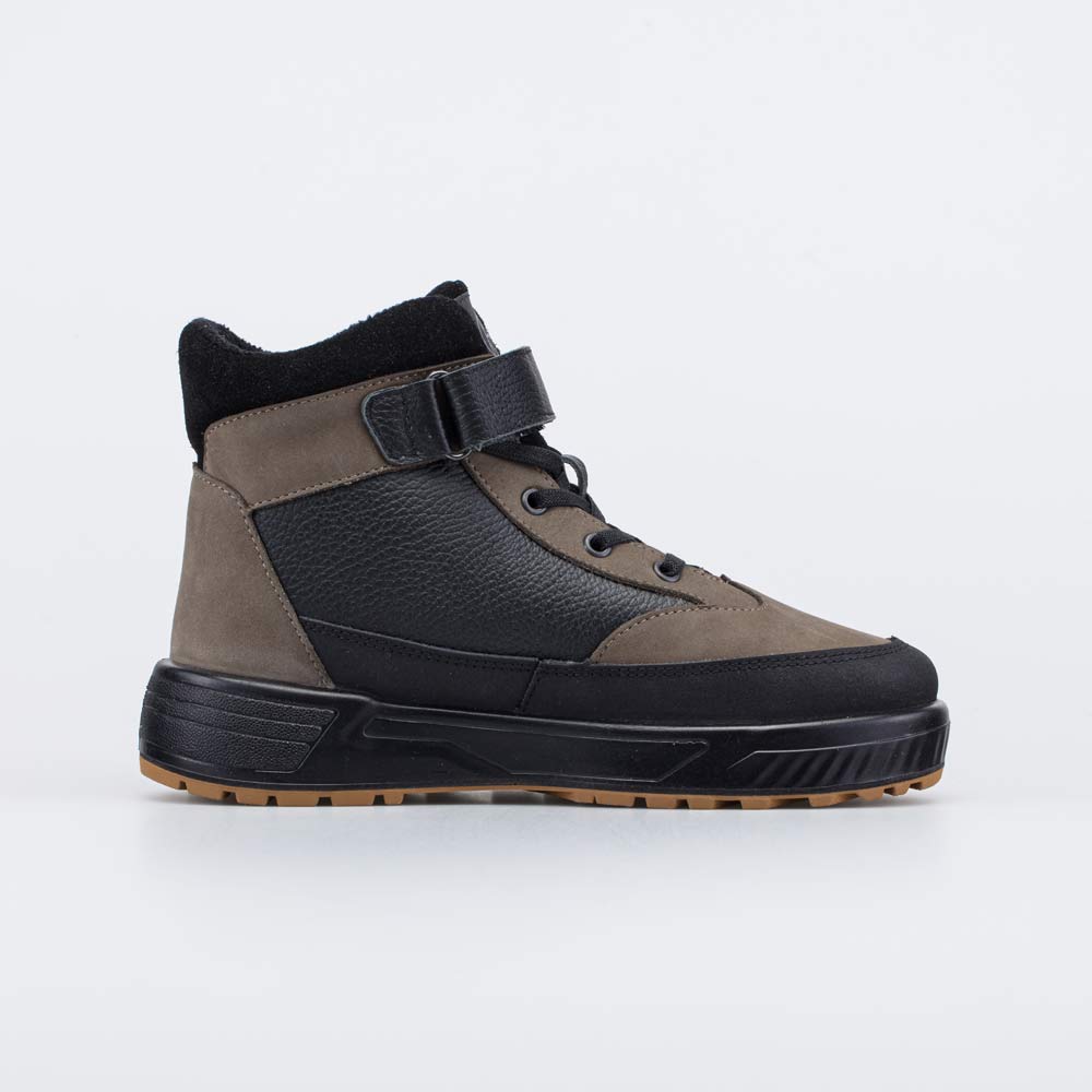 Верх зимних ботинок изготовлен из натуральной кожи разных фактур (гладкая кожа, нубук, велюр). Вдоль подошвы имеется защита от влаги и реагентов – кожаная накладка с ПУ-напылением.