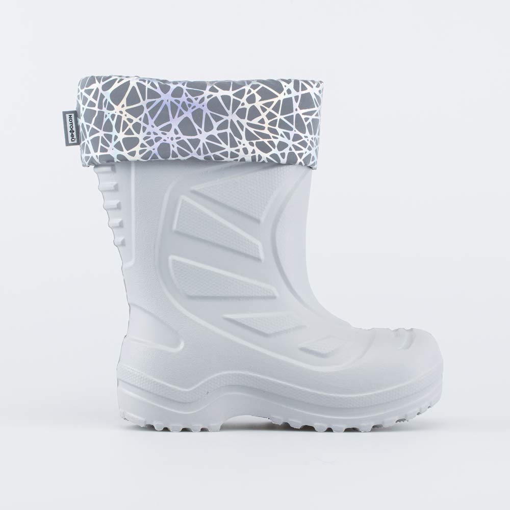 Утепленные сапоги из мягкого, гибкого и амортизирующего материала ЭВА выполнены в трендовом сером цвете. Имеют двухслойный вкладной чулок и учитывают особенности детской стопы.