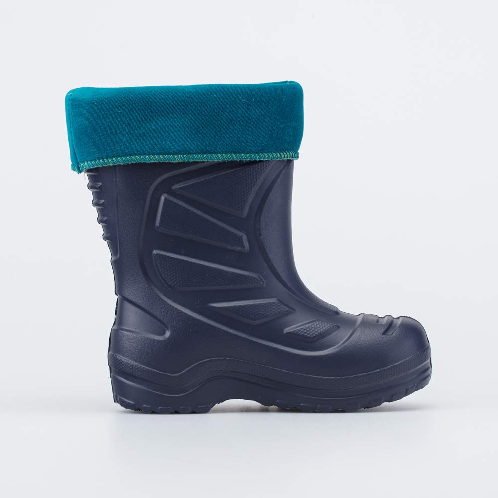 Водонепроницаемые сапожки из ЭВА черного цвета с тёплым вкладным чулком подходят для мальчика-школьника.