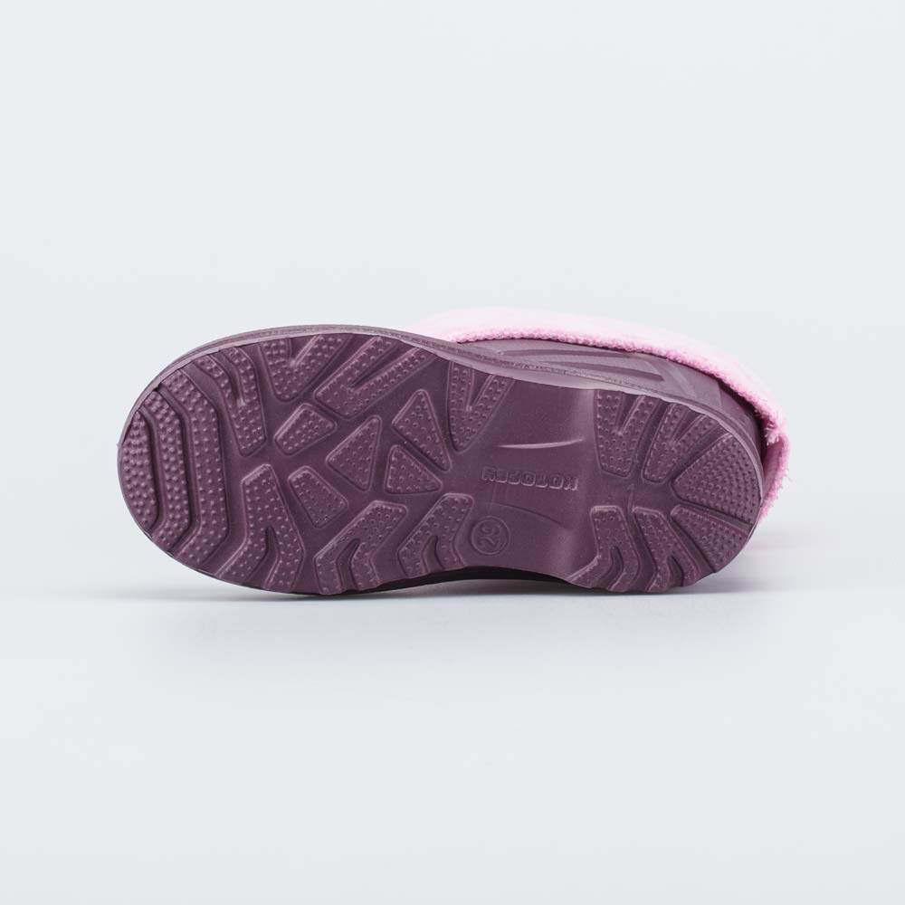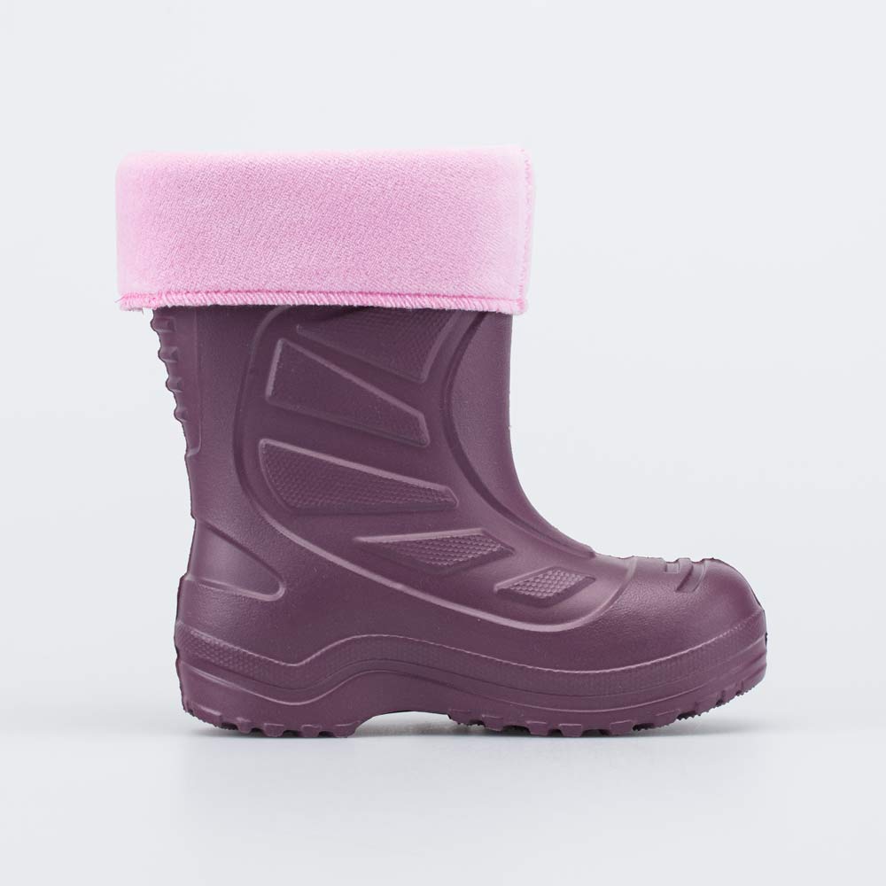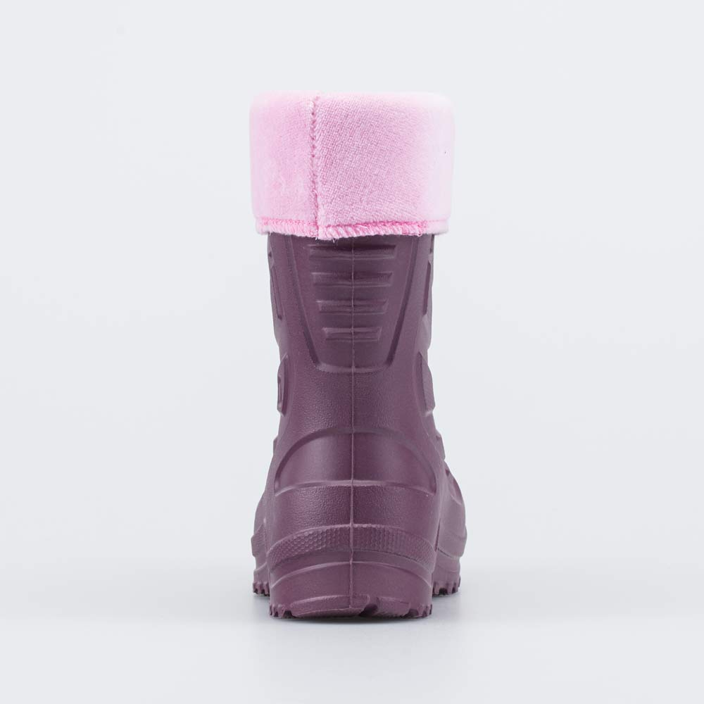 Водонепроницаемые сапожки из ЭВА бордового цвета с тёплым вкладным чулком подходят для девочки-школьницы.