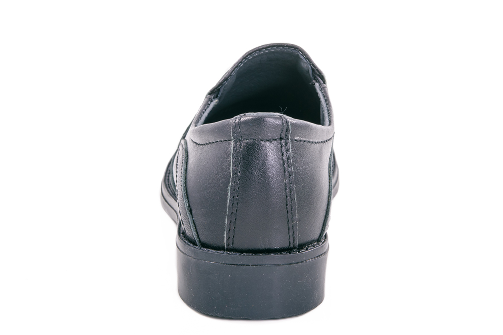 Полуботинки школьные классические. Выполнены в традиционном чёрном цвете. Материал верха натуральная, гладкая кожа. Наличие резинок на союзке позволяет легко обувать и снимать обувь. Мягкий манжет создает комфорт при ходьбе и предотвращает натирание ножки. Подошва клеевая украшена рантом в виде ниточной строчки.