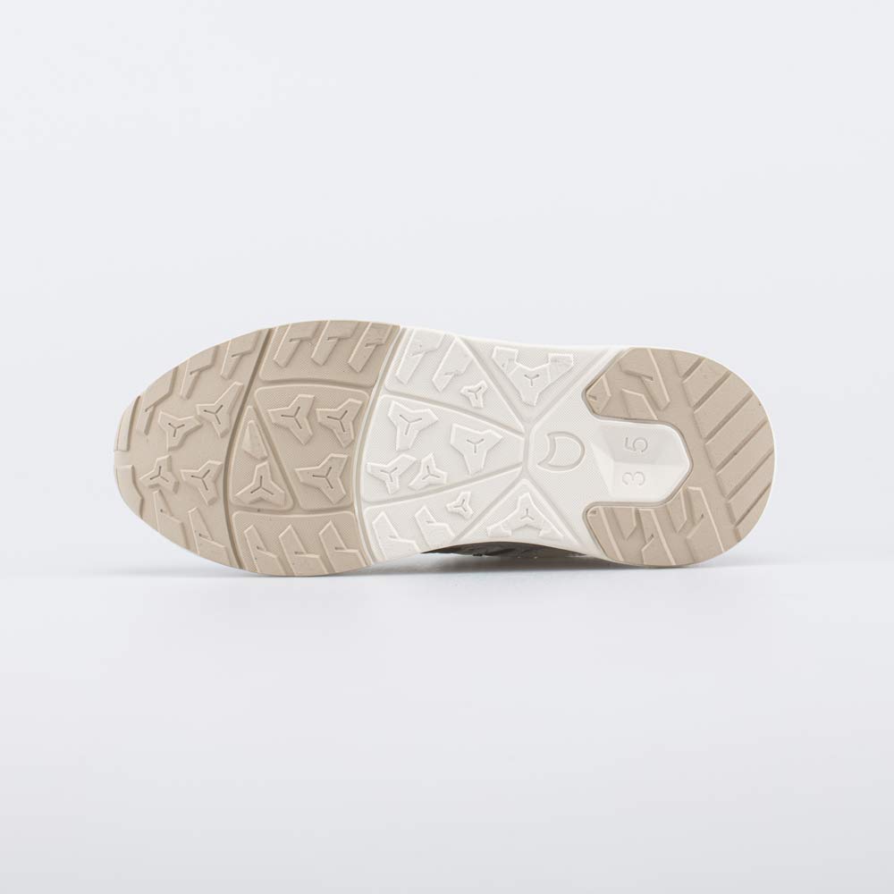Верх изготовлен из сетчатого материала, который традиционно используется в спортивной обуви. Детали из искусственной кожи придают каркасу необходимую жесткость и защищают обувь от преждевременного повреждения.