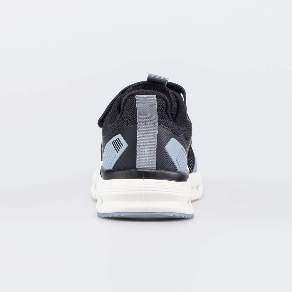 Верх этих черных кроссовок изготовлен из текстиля. Его вязаная структура обеспечивает высокую воздухопроницаемость подростковой обуви. При этом подкладка из гипоаллергенного полиамида делает кроссовки достаточно плотными, чтобы носить их в сухой осенне-весенний сезон. Формованная основа съемной текстильной стельки мягко амортизирует и поддерживает стопу.