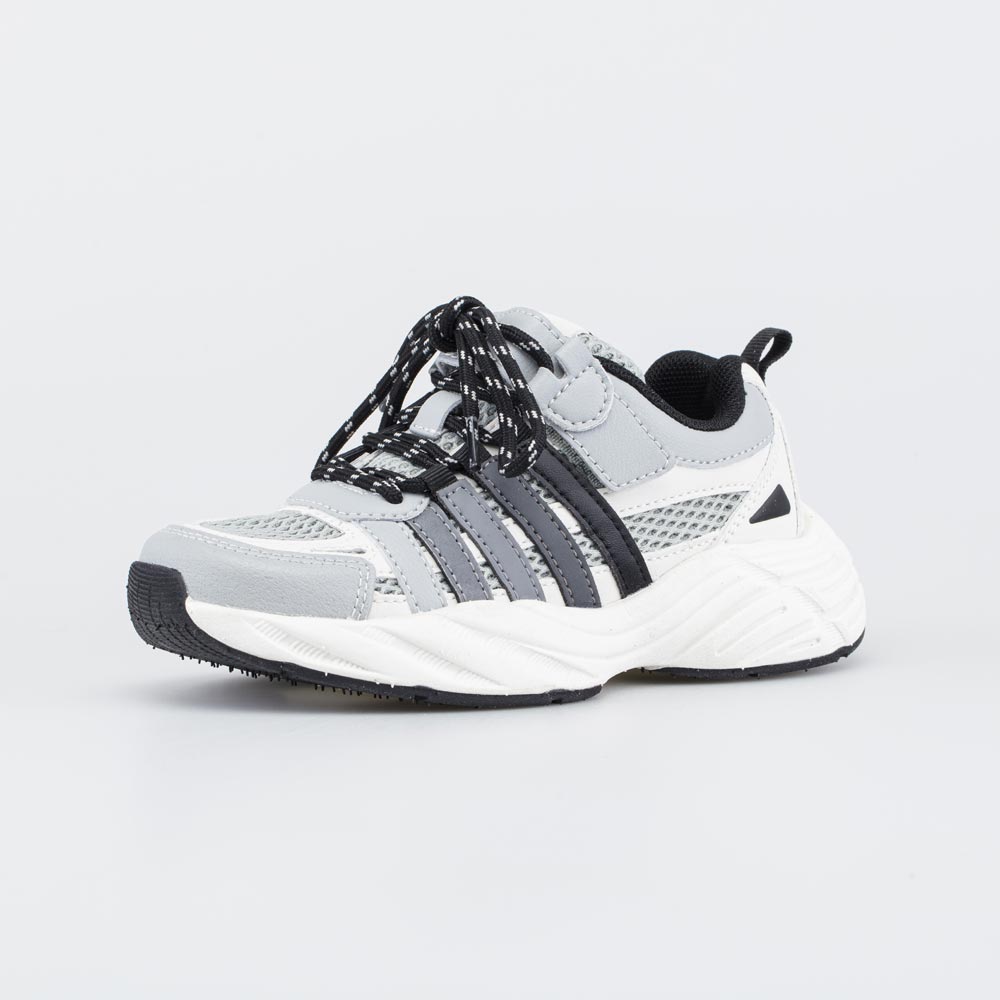 Верх подростковых кроссовок изготовлен из комбинации искусственной кожи и текстильной сетки, которая обеспечивает стопам высокий уровень вентиляции, что особенно важно во время длительной носки и активного отдыха.