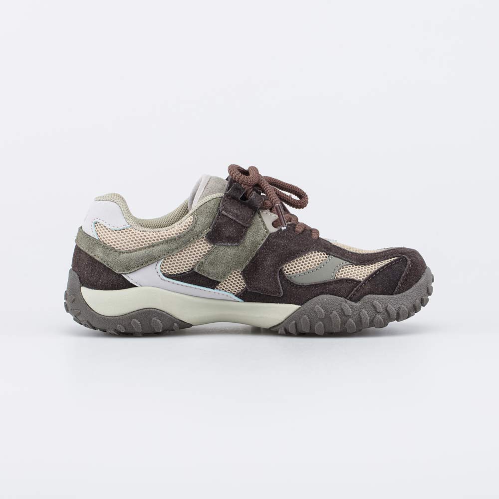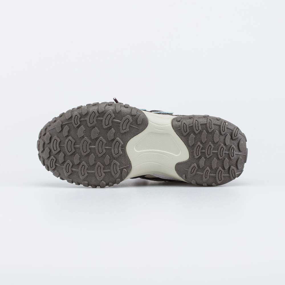 Легкая, гибкая и амортизирующая подошва из ЭВА дополнена термоэластопластом с фактурной поверхностью для повышения устойчивости на полу и природном грунте.