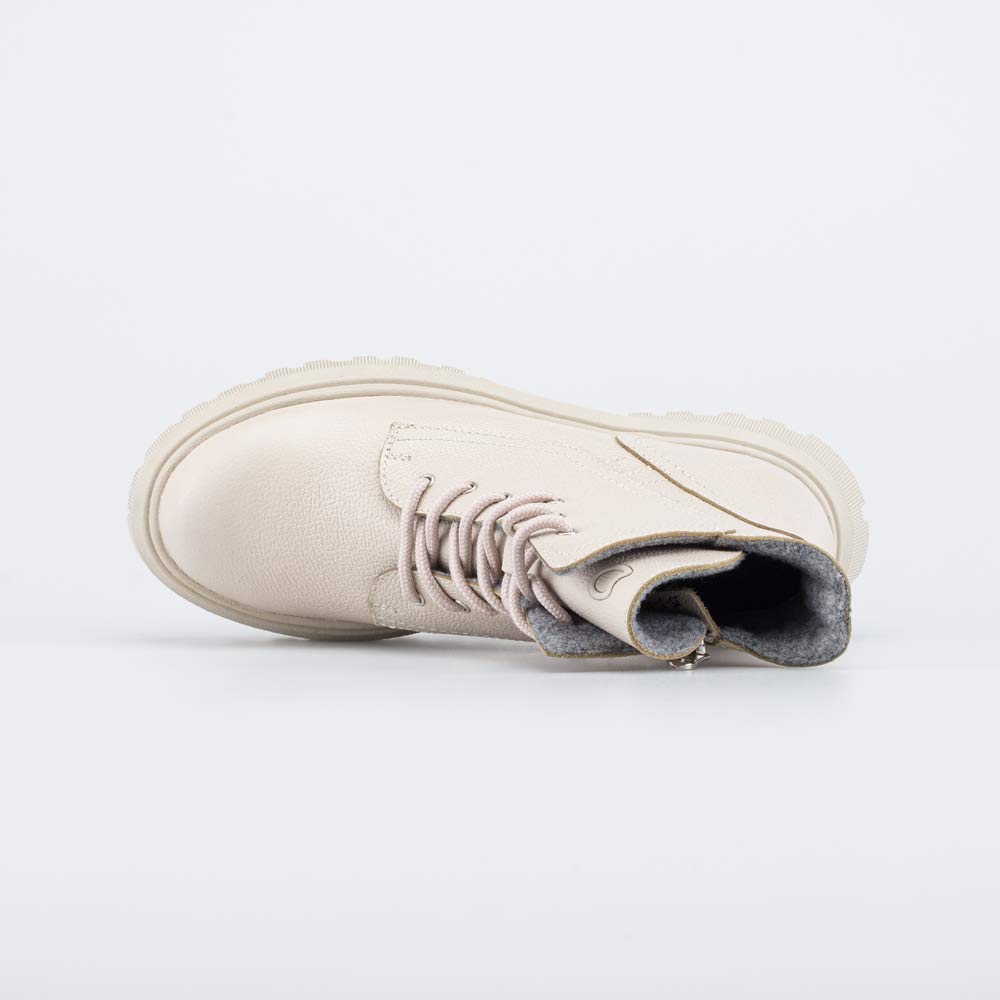Утепленные кожаные ботинки бежевого цвета подходят для девочки-школьницы.
