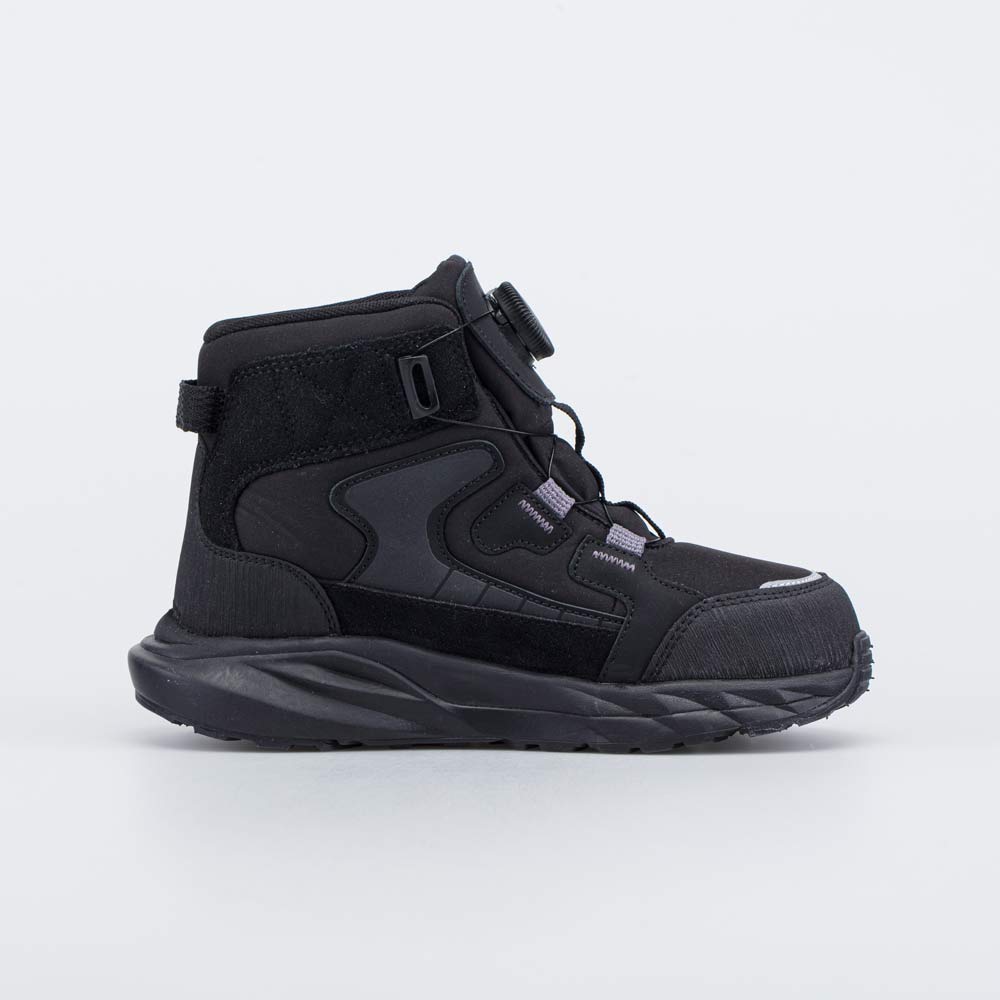 Ботинки с быстрой шнуровкой надежно фиксируются на ногах одним движением: просто покрутите шайбу, и прочные тросики затянутся.