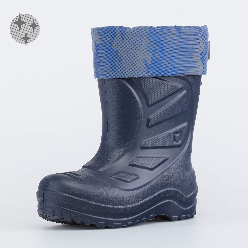 Детские утепленные сапоги из ЭВА имеют двухслойный вкладной чулок и учитывают особенности детской стопы.
