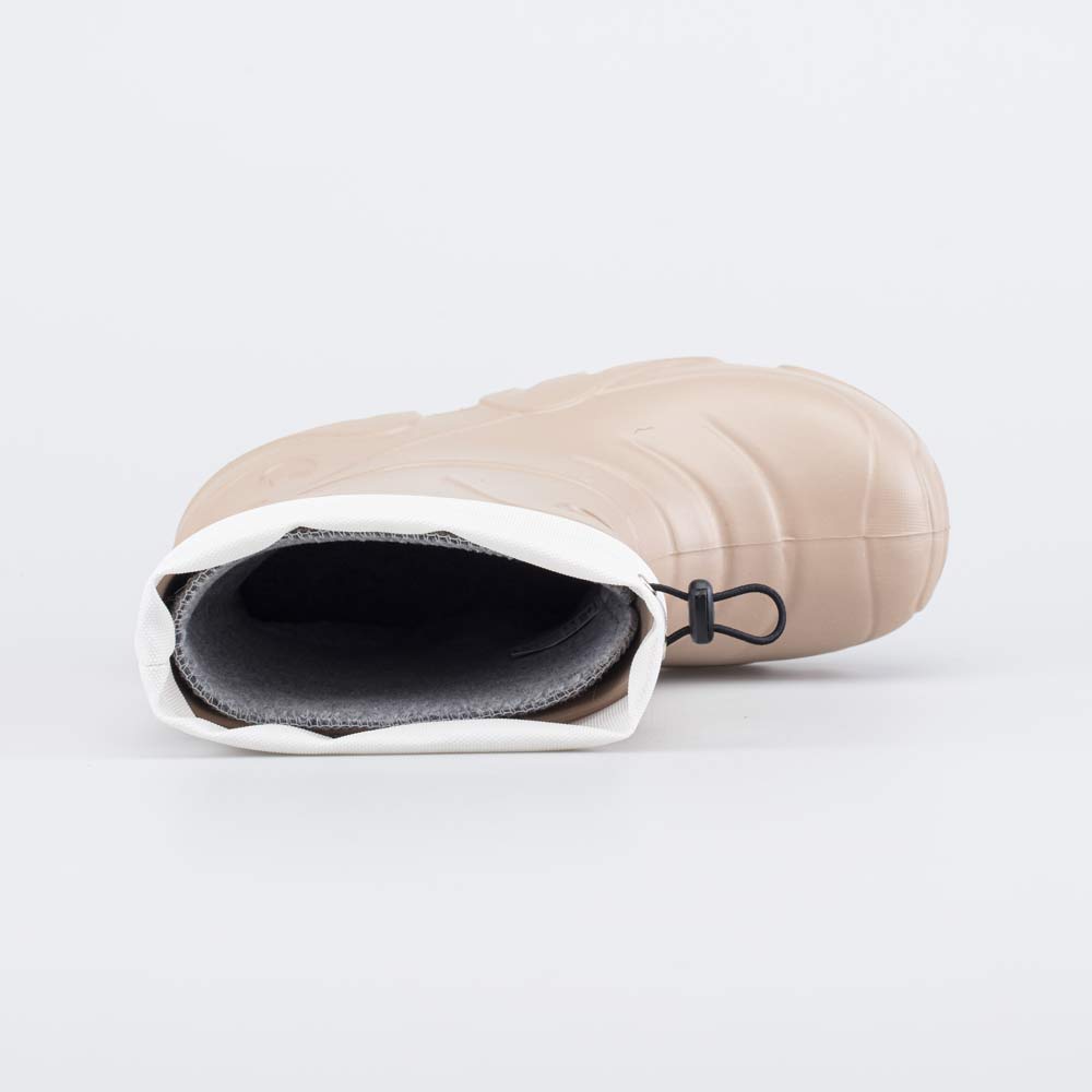Утепленные сапожки из легкого, гибкого и амортизирующего материала ЭВА выполнены в трендовом бежевом цвете. Имеют двухслойный вкладной чулок и учитывают особенности детской стопы.