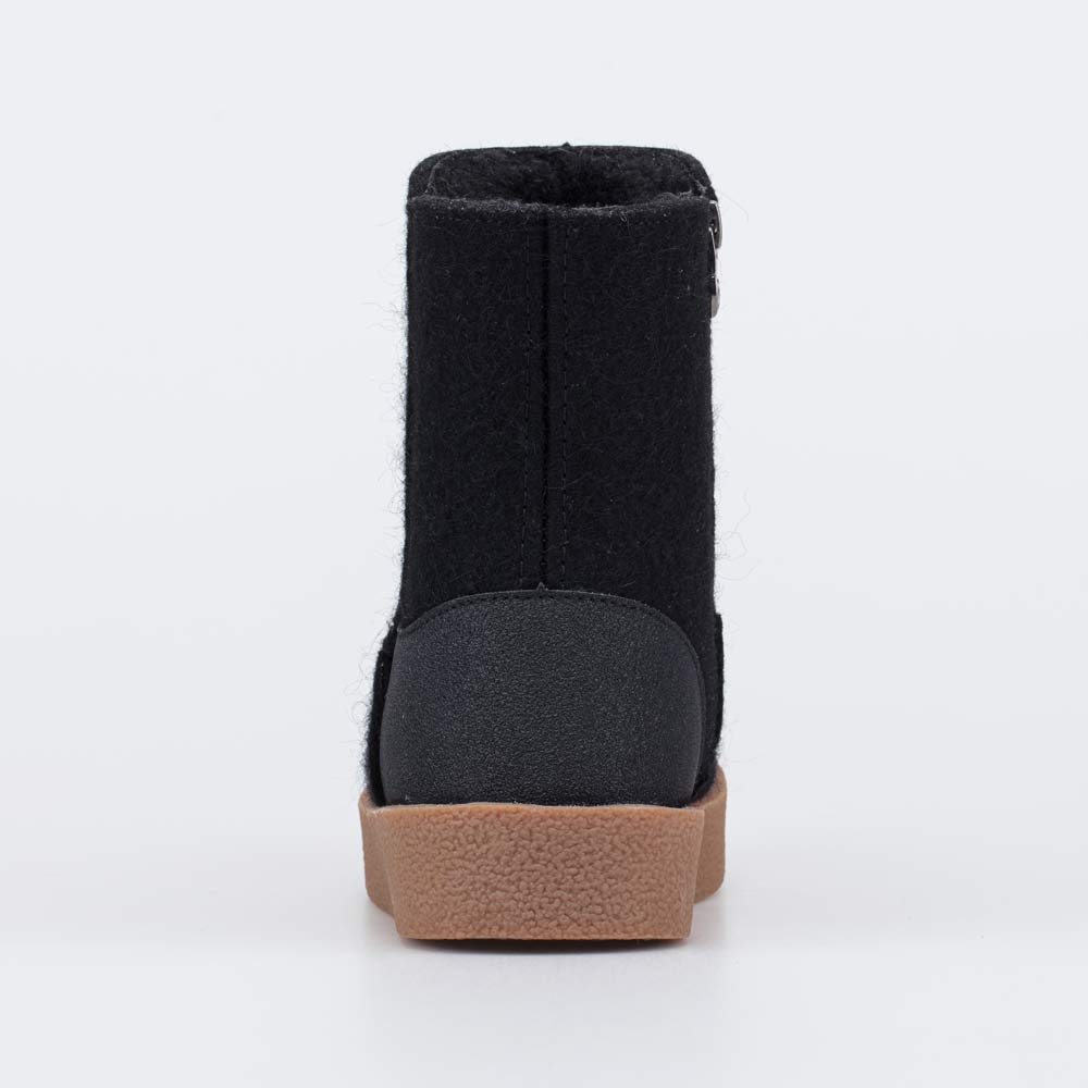 Войлок плотный, с водоотталкивающими свойствами. Он надежно сохраняет тепло, дышит и создаёт приятный микроклимат вокруг стопы. Пяточная часть защищена кожаной накладкой с ПУ-покрытием, предохраняющей от влаги и реагентов.