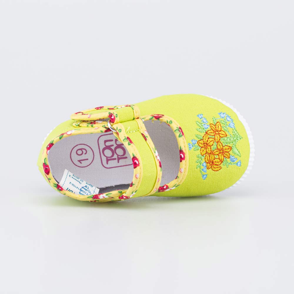 Верх, подкладка и стелька выполнены из натурального хлопка, который поддерживает оптимальный микроклимат внутри детской обуви: отводит от стоп влагу и позволяет им дышать, обеспечивая максимальный комфорт во время длительной носки. Закрытый носок защищает пальчики от возможных травм.