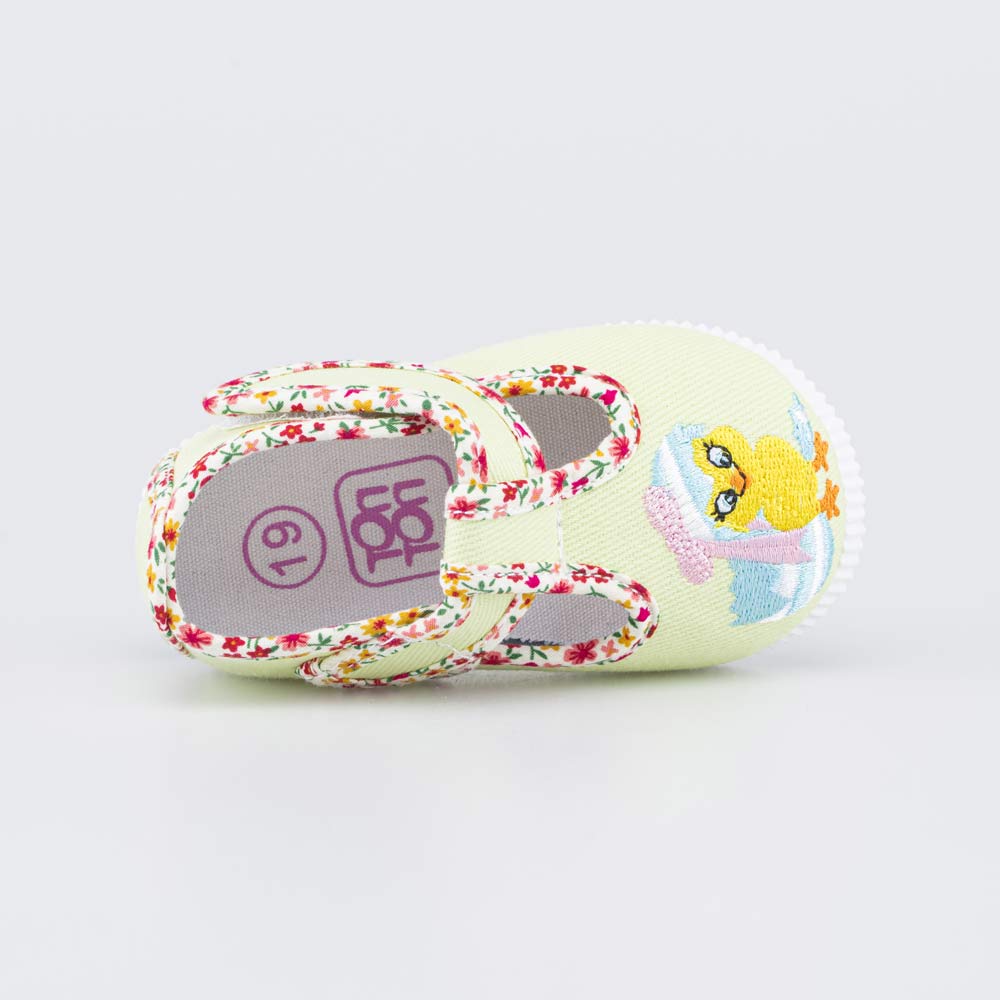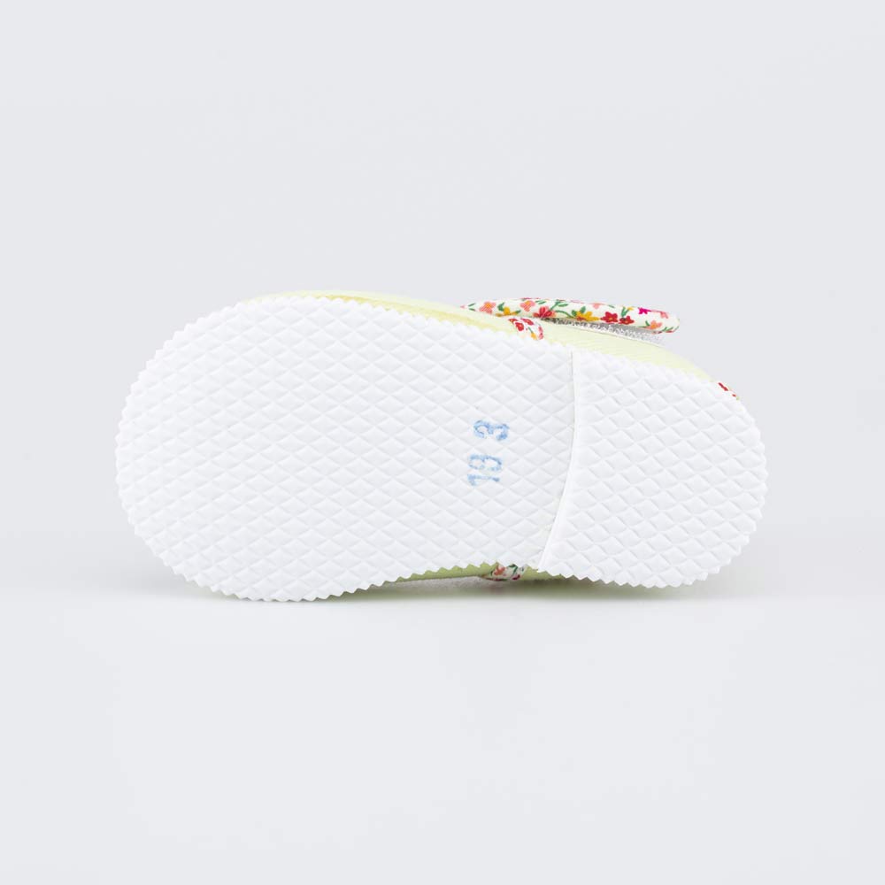 Верх, подкладка и стелька выполнены из натурального хлопка, который поддерживает оптимальный микроклимат внутри детской обуви: отводит от стоп влагу и позволяет им дышать, обеспечивая максимальный комфорт во время длительной носки. Закрытый носок защищает пальчики от возможных травм.
