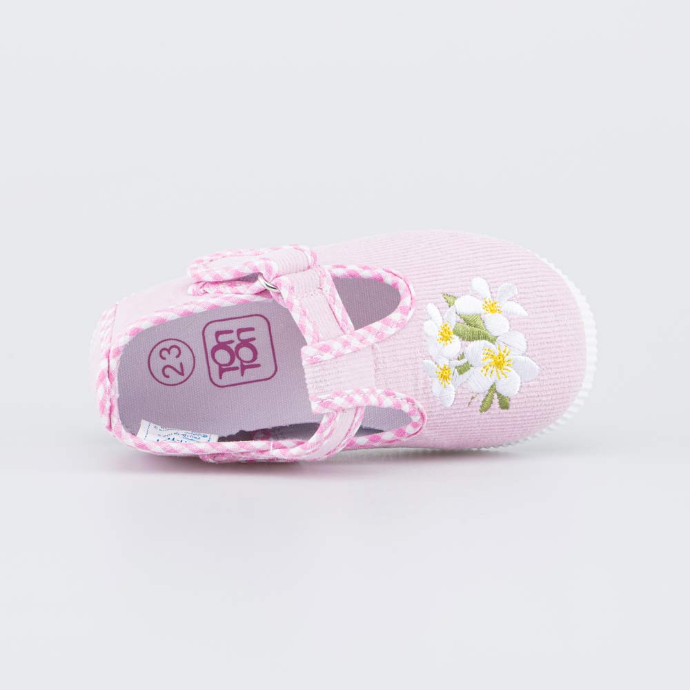 Верх, подкладка и стелька выполнены из натурального хлопка, который поддерживает оптимальный микроклимат внутри детской обуви: отводит от стоп влагу и позволяет им дышать, обеспечивая максимальный комфорт во время длительной носки. Закрытый носок защищает пальчики от возможных травм.