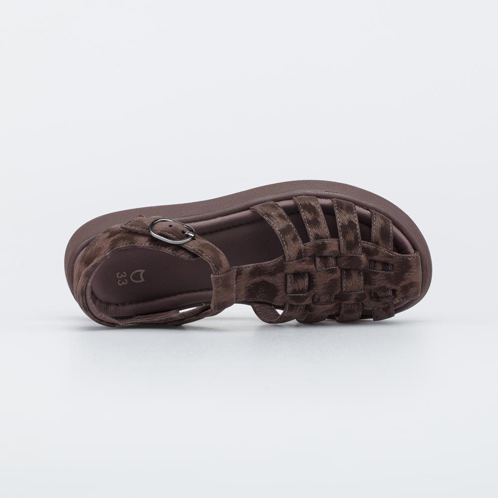 Летние подростковые босоножки Котофей на тонкой подошве и с закрытым носом декорированы модным анималистичным принтом и отлично подходят для прогулок в жаркую погоду.