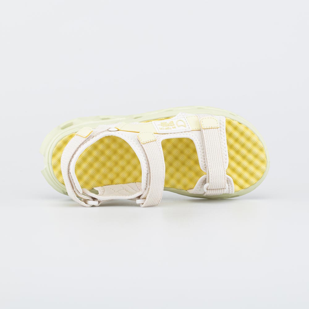 Летние сандалии Котофей с открытым носом и открытой пяткой для девочки выполнены из быстросохнущих материалов в трендовой расцветке сливочное масло. Модель отлично подходит для купания, для моря и для пляжа.