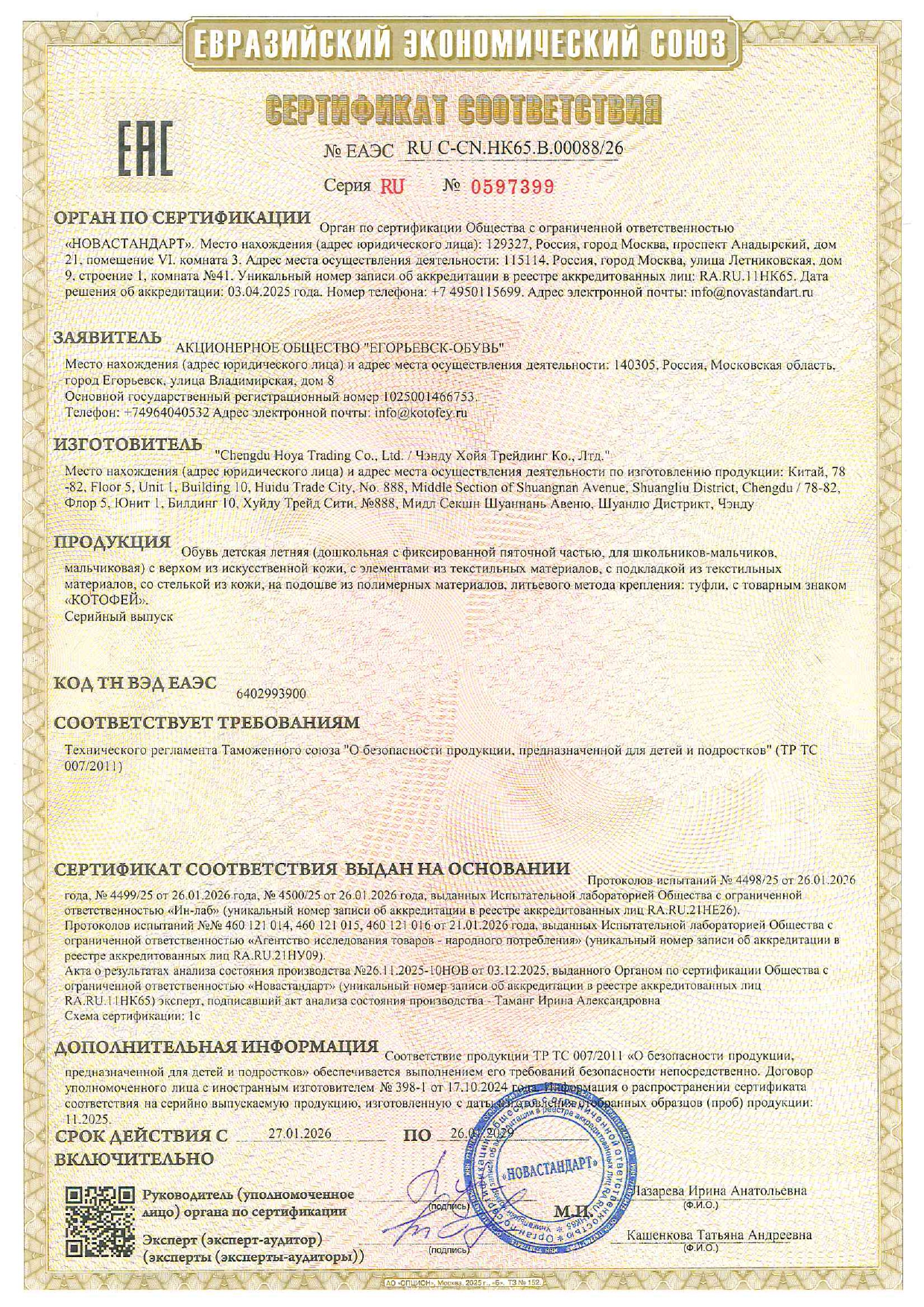 ЕАЭС RU С-CN.НК65.В.00088/26