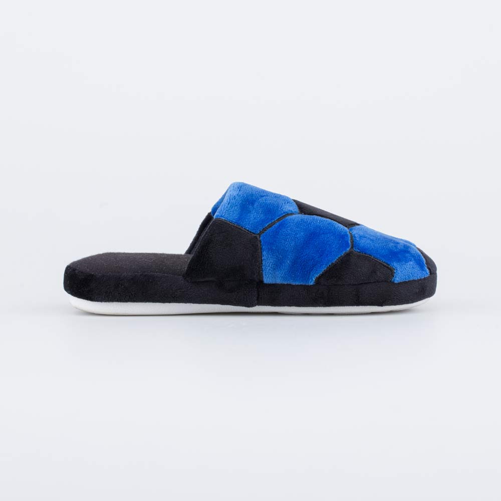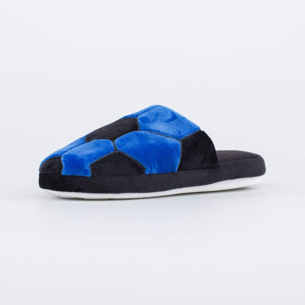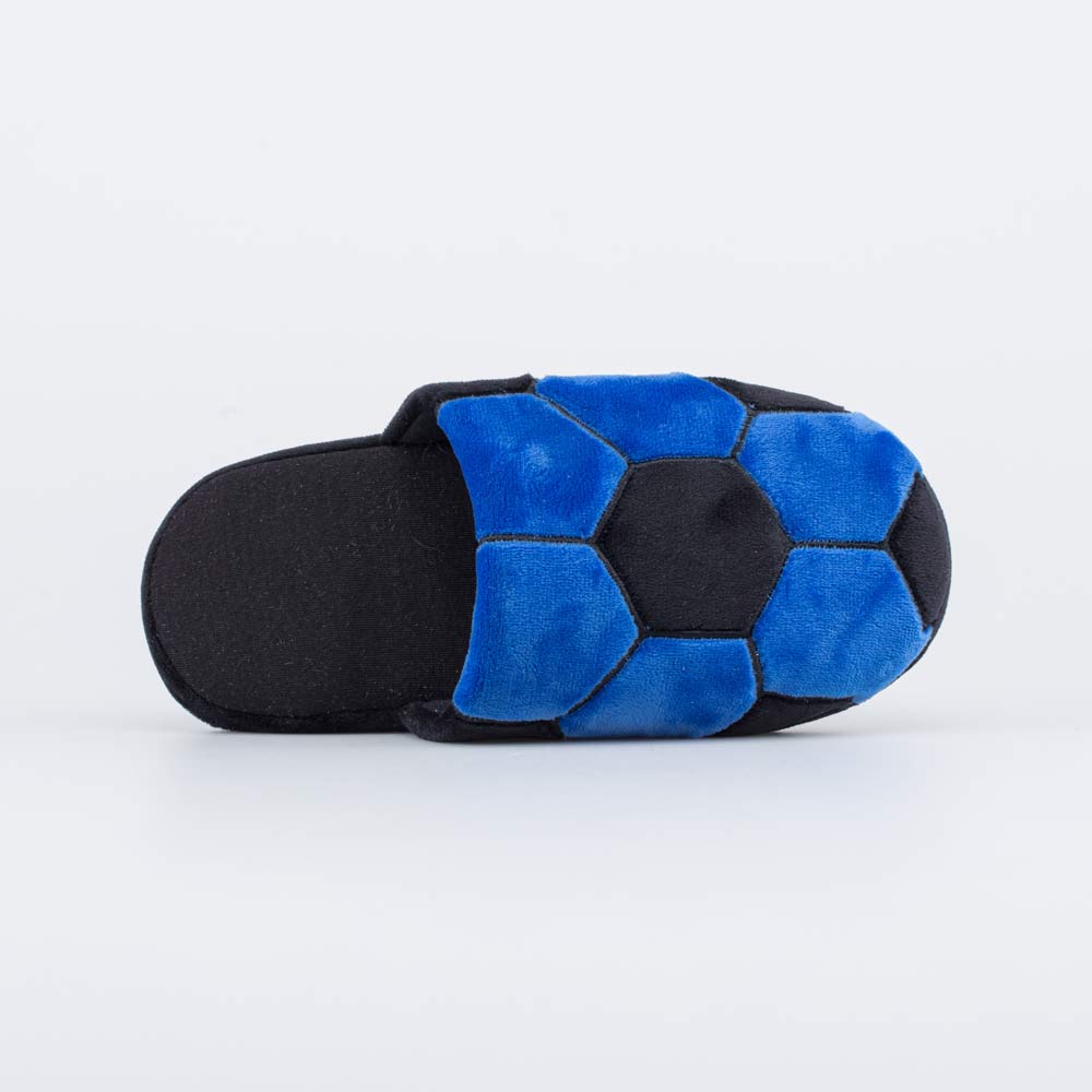 Домашние тапочки-шлепки, стилизованные под футбольную тему, подходят для мальчика.