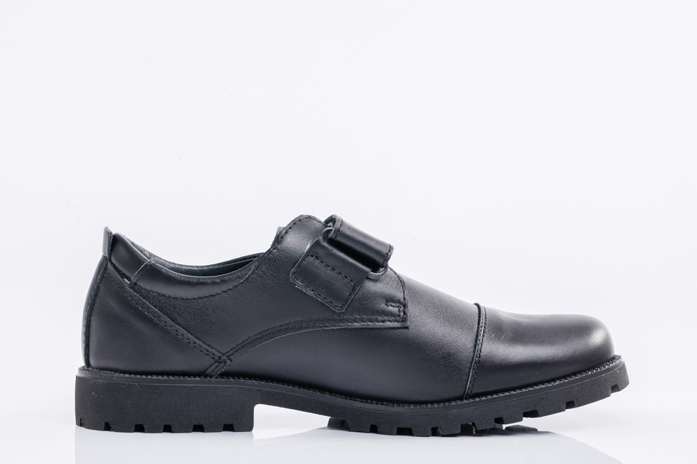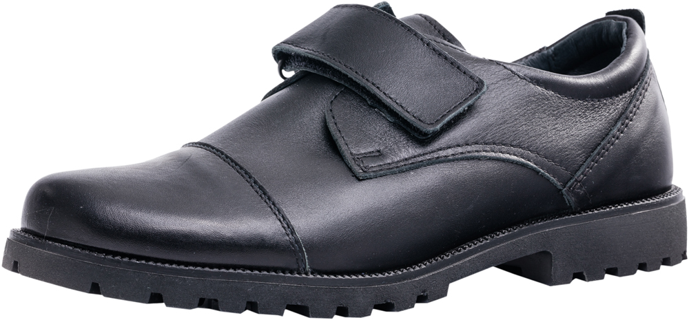 Классические туфли традиционного черного цвета выполнены из натуральной кожи. Ремешок с велькро позволяет легко обувать и снимать обувь и в то же время гарантирует плотное прилегание обуви к ноге. Мягкий манжет создает комфорт при ходьбе и предотвращает натирание ножки. Подошва модели клеевая. Отличный выбор, как для повседневной носки, так и в качестве сменной обуви в общеобразовательных учреждениях.