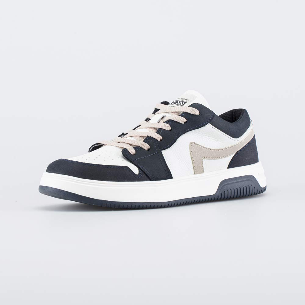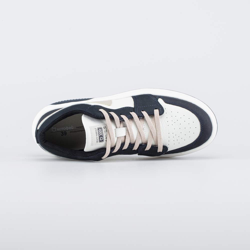 Легкие и удобные полуботинки из натуральной кожи выполнены в сочетании двух цветов (белого и синего) и подойдут для мальчика-подростка.