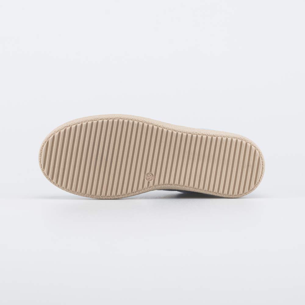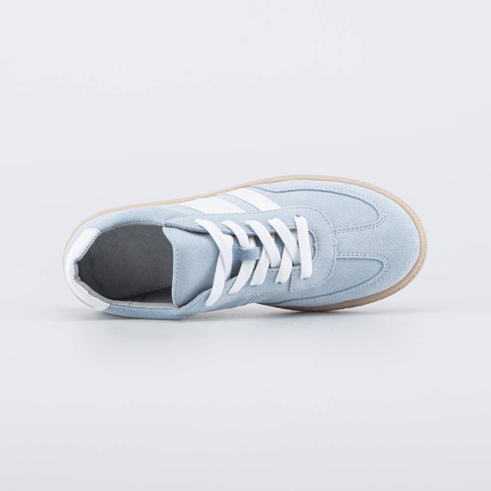 Верх изготовлен из дышащей натуральной кожи нежного голубого цвета, который дополнен белыми акцентами.