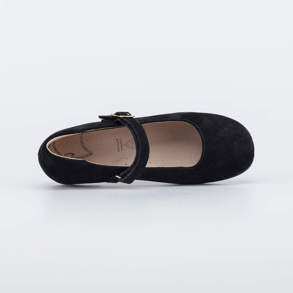 Черные туфли имеют верх из гипоаллергенной и дышащей натуральной кожи-велюра. Подкладка и стелька изготовлены из светлой натуральной кожи – не придется переживать, что школьная обувь окрасит носочки или колготки.