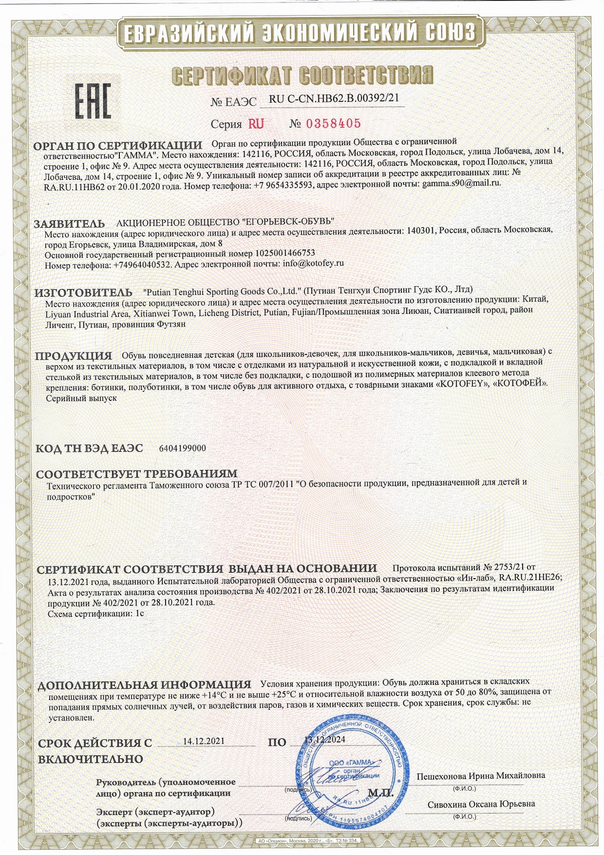 ЕАЭС RU С-CN.НВ62.В.00392/21
