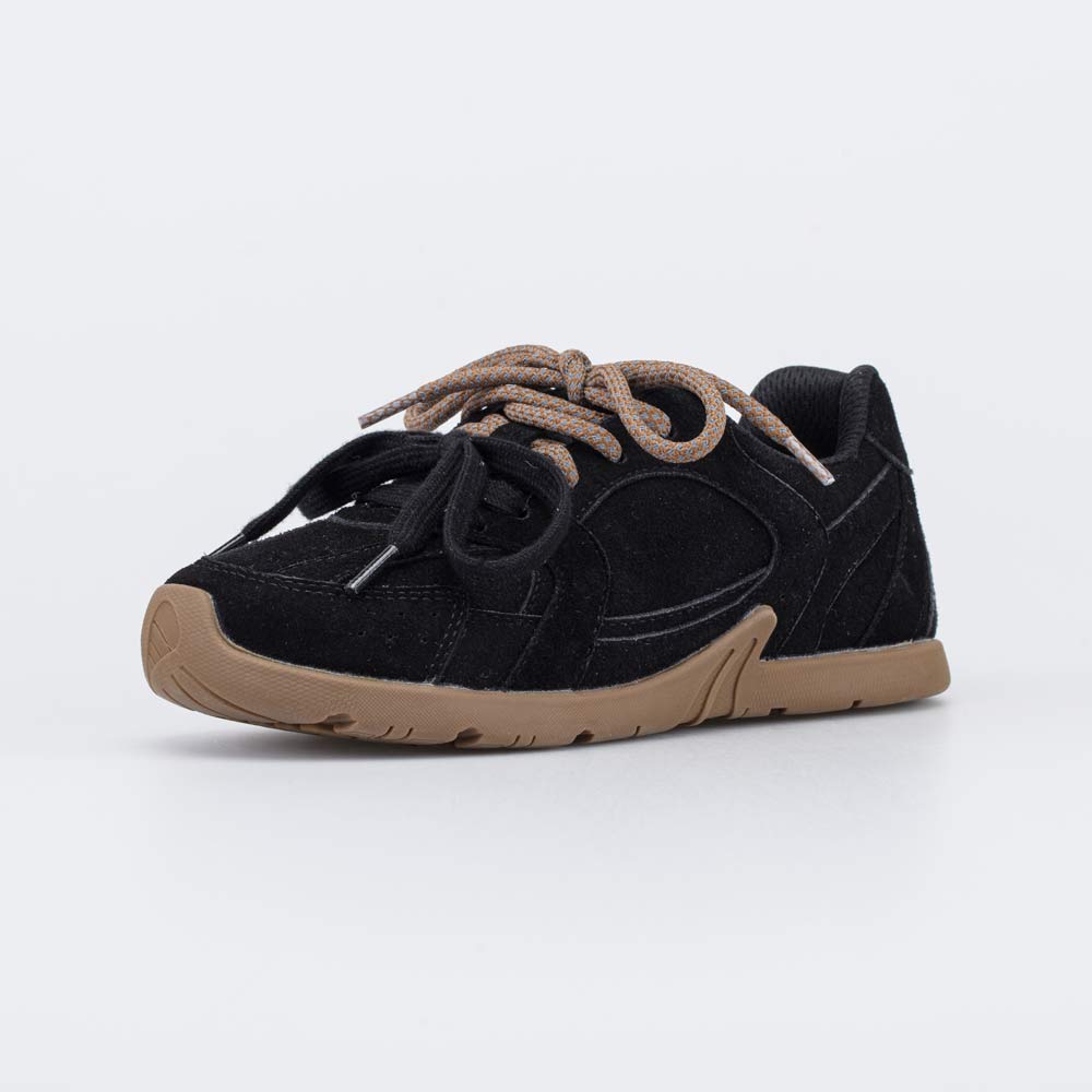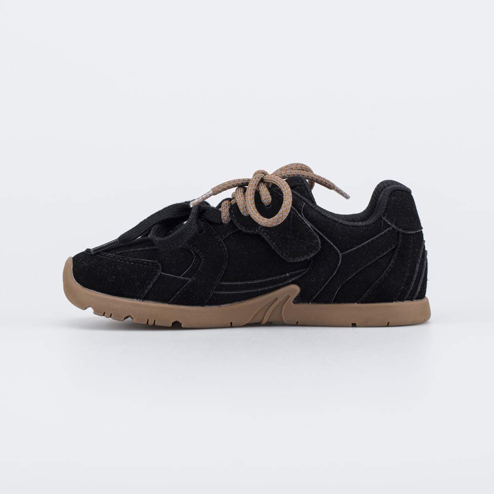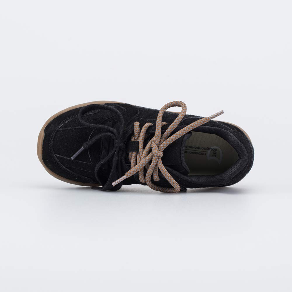 Эти черные кроссовки имеют верх из комбинации натуральной и искусственной кожи-велюра с хорошо выраженными влагоотталкивающими свойствами.