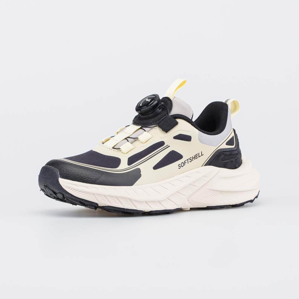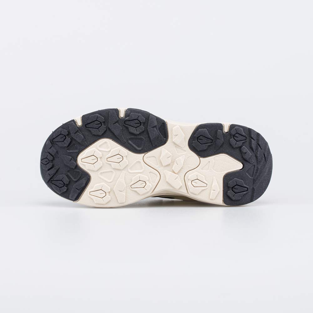 Верх кроссовок из ветронепродуваемой ткани софтшелл дополнен деталями из ПВХ, которые формируют каркас модели и защищают материал от повреждений.