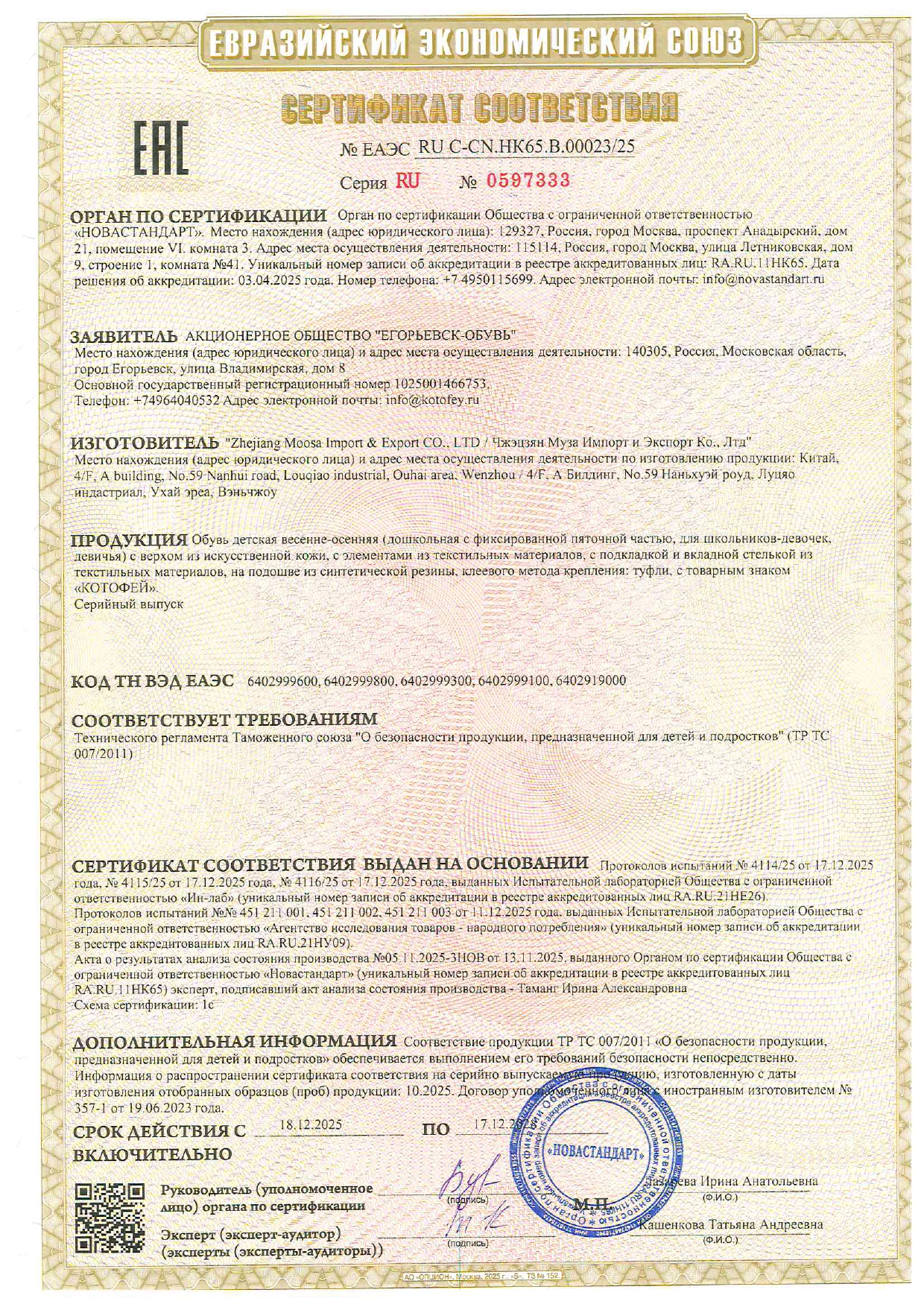 ЕАЭС RU С-CN.НК65.В.00023/25
